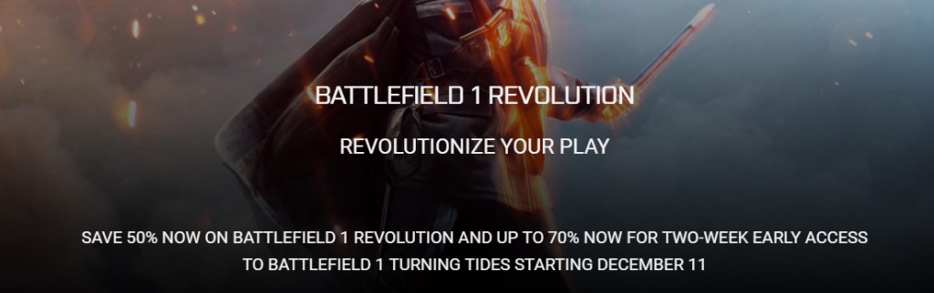 يبدو ان موعد فتح اضافة Turning Tides الخاصة بلعبة Battlefield 1 للوصول المبكر “Early Access” سيكون في 11 ديسمبر القادم و هذا حسب ما ظهر عن طريق الخطأ على موقع اللعبة الرسمي الذي اظهر تاريخ اطلاق الاضافة للوصول المبكر قبل ان يتم سحبه.