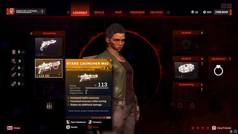 فيما يتعلق بالأسلحة في لعبة Redfall فيبدو انه سيكون لها مستويات مختلفة حسب نوع الأسلحة وقوتها بشكل مشابه لألعاب الار بي جي ويمكن ترقيتها وتطويرها من خلال اكتساب المزيد من المهارات خلال تقدم اللاعب في اللعبة.