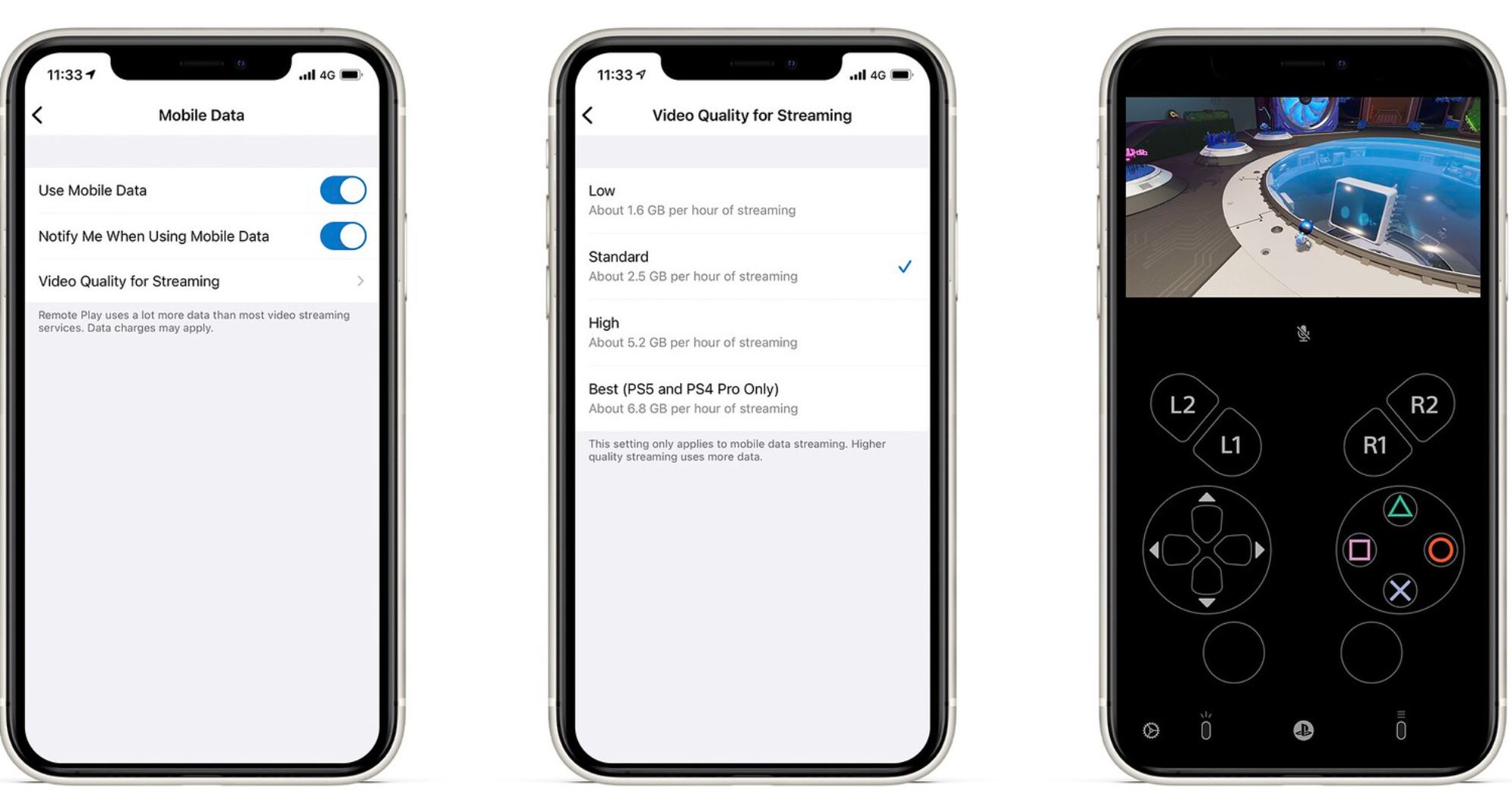 • مع تطبيق PS Remote Play، يتمتع اللاعبون بالقدرة على البث عن بُعد وتشغيل ألعاب PS4 و PS5 والتبديل بين الألعاب وتصفح قوائم وحدة التحكم الخاصة بهم على أي جهاز متوافق متصل بشبكة النطاق العريض الخاصة بهم، حيث يستخدم اللاعبون الهاتف المحمول التطبيق لنظامي iOS و Android لديه خيار استخدام اتصال بيانات الجوال عندما لا تكون شبكة WiFi متاحة.