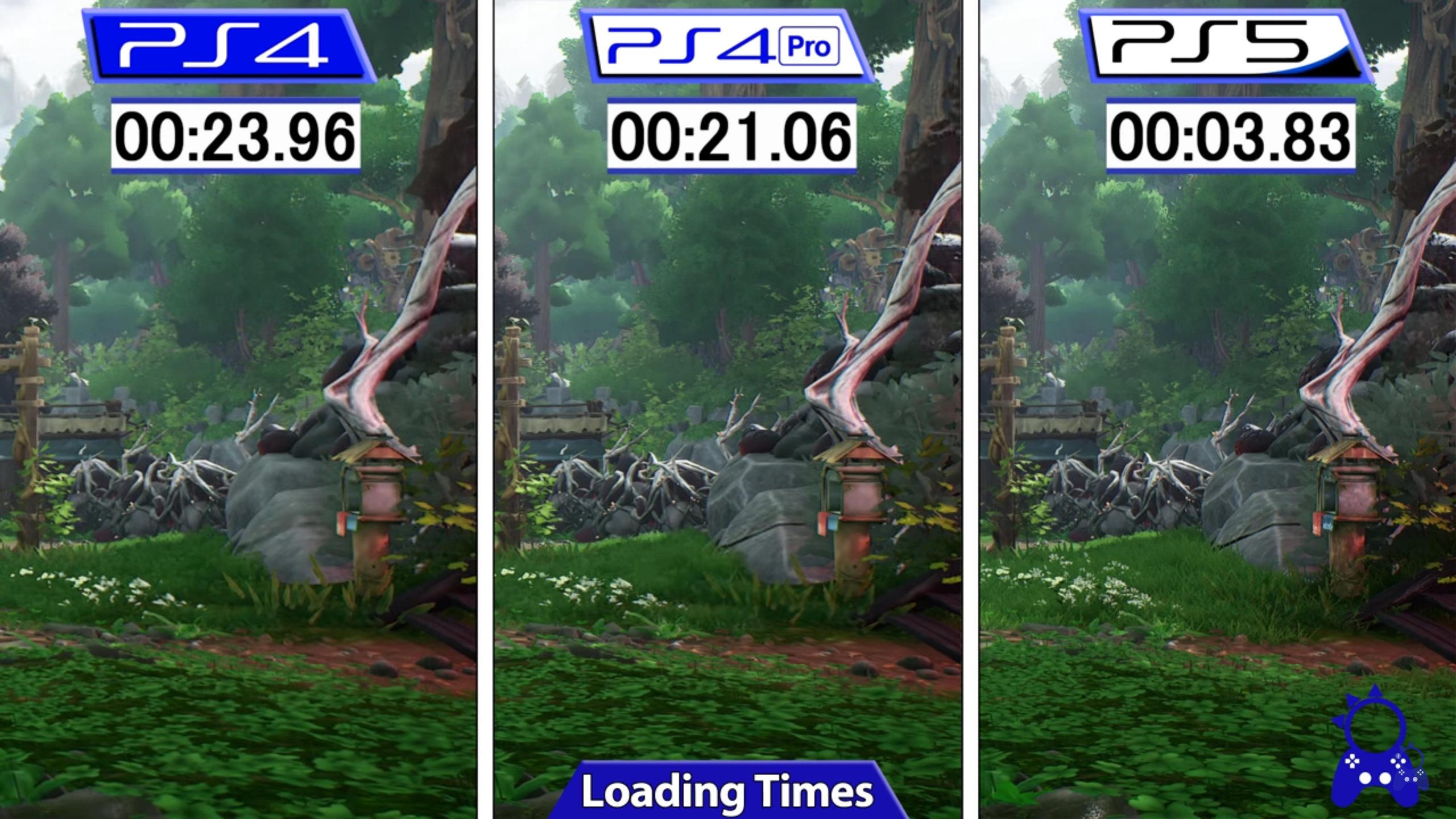 وفيما يتعلق بسرعة التحميل، فالنتيجة محسومة سلفاً لصالح جهاز الجيل الجديد بلايستيشن 5، حيث كان هناك فرق كبير بين الجيلين في سرعة تحميل اللعبة كما تشاهدون الآن في الصورة بالأسفل.