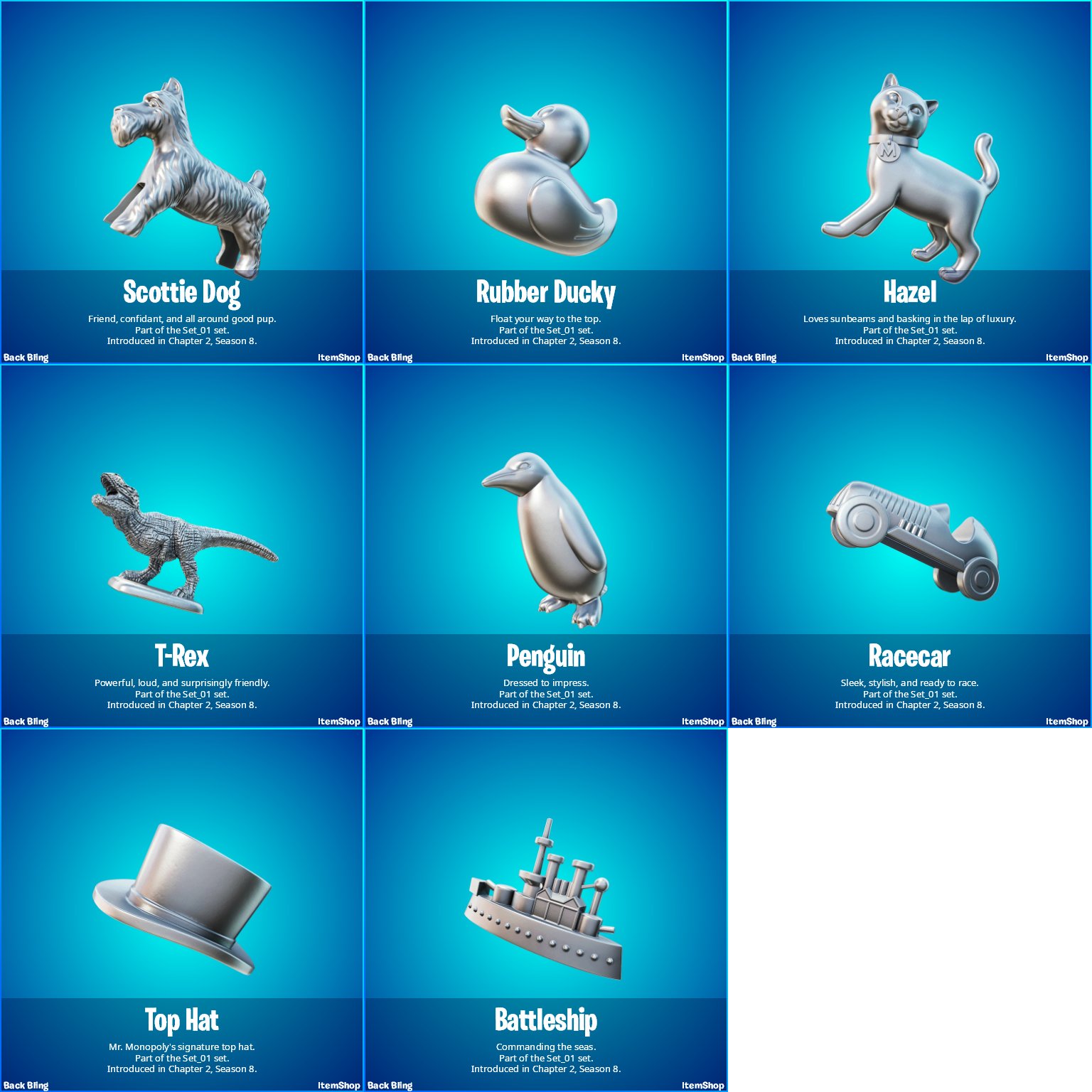 كشفت بيانات مسربة جديدة، والتي أظهرت هذا التعاون المحتمل بينهما، مع ظهور العديد من العناصر والاغراض الخاصة بلعبة Monopoly المرتبطة بالموسم الثامن مع احدث الإضافات مثل لـ Rubber Ducky و Penguin و T-Rex مع العديد من الكلاسيكيات الأخرى مثل Top Hat و Scottie Dog و Battleship، وبإمكانكم مشاهدة جميع القطع المتنوعة من لعبة Monopoly Back Bling التي تم تسريبها بالأسفل.
