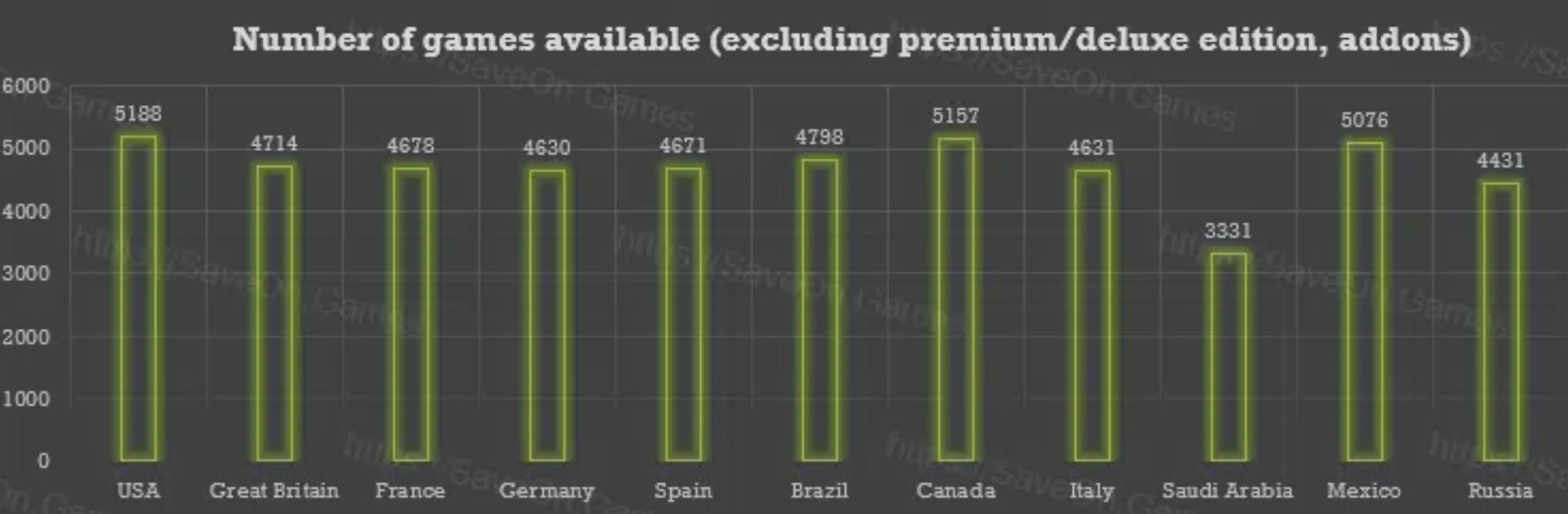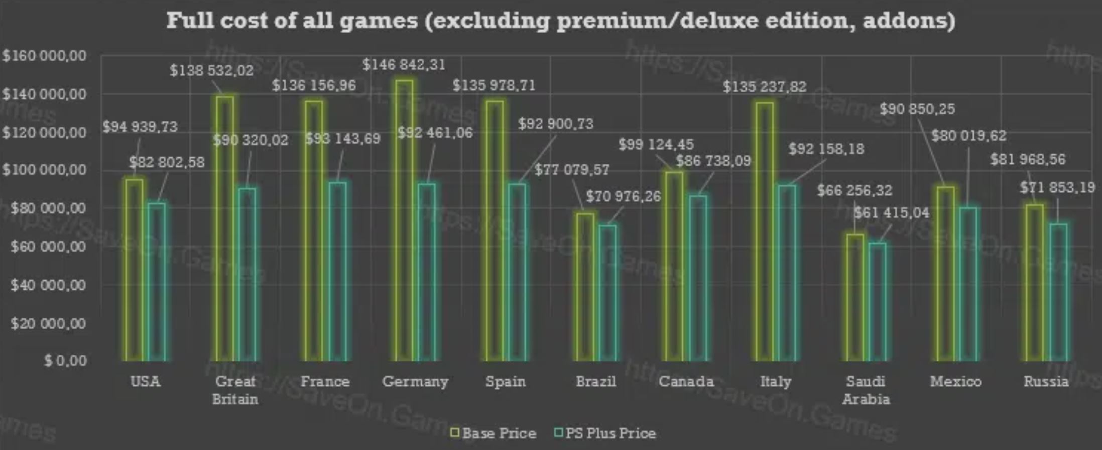 في حين أن هذه البيانات غير هامة كثيراً بالنسبة لبعض من اللاعبين، إلا أنها تعطي نظرة عن كثب حول أسعار الألعاب عبر مناطق مختلفة، حيث من الممكن أن توفر أكثر من 52000 دولار إذا اشتريت جميع الألعاب في متجر PlayStation الألماني بخصومات اشتراك PlayStation Plus.