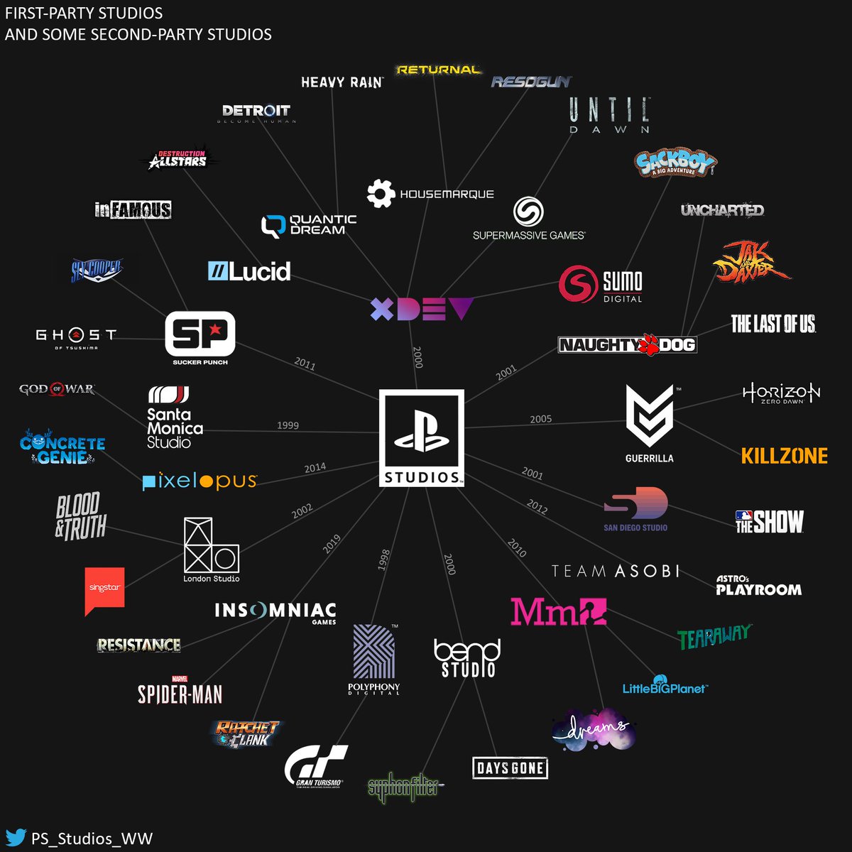 وكذلك تم الاستحواذ على الاستديو المتخصص في ألعاب الحاسب الشخصي Nixxes Software و Firesprite التي يقع مقرها في المملكة المتحدة، و Bluepoint Games الذي نجح في إعادة تطوير لعبة Demon’s Souls حصرية الإطلاق لجهاز بلايستيشن 5، والذي يتخذ من ولاية تكساس مقراً له.