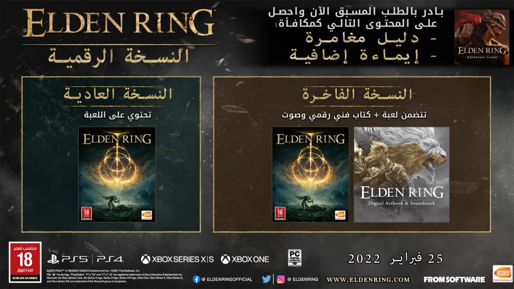 لعبة Elden Ring ستصدر على منصات الجيل الجديد والجيل الماضي والحاسب الشخصي في 25 فبراير (2) من العام القادم 2022.