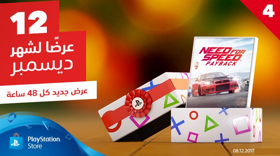 انتهت 48 ساعة على العرض الثالث لحملة “12 تخفيض” على متجر البلايستيشن العربي و الان موعدنا مع العرض الرابع و هذه المرة لعبة مميزة قد يسعى الكثير منا لتجربتها منذ مدة انها لعبة السرعة و الاثارة Need for Speed Payback.