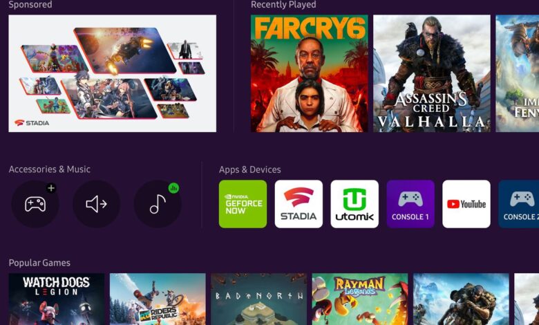 وسيتضمن Smart Hub أيضًا امكانية الولوج الى مكتبات ألعاب الخدمات السحابية مثل Google Stadia و GeForce Now و Utomik وغيرها المزيد من الخدمات الذي سيتم ضمها في المستقبل.