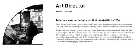 استديو سانتا مونيكا يبحث حاليا عن مخرج فنون او رسوم للعمل على مشروع جديد كليا غير معلن عنه بعد. وغير مرتبط بعنوان الاستديو المقبل لعبة God Of War Ragnarok. والذي يؤكد ذلك أن ذات المنصب تم شغله في وقت سابق من قبل مطور يدعى رافاييل غراسيتي. المشروع الجديد سيكون كبير وواسع كما جاء في الوصف الوظيفي ادناه.