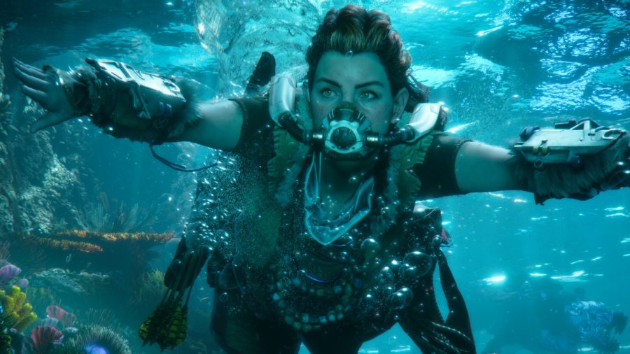 تقدم لعبة Horizon Forbidden West تجربة مميزة هذه المرة عن الجزء السابق، ويكمن جزء كبير من هذه التجربة في عالم ما تحت الماء، من خلال الغوص واستكشاف الانقاض التي غمرتها المياه ستدرك ان هناك عالم اخر امامك لاستكشافه ولكن من اجل ذلك ستحتاج الى قناع الغوص Diving Mask.