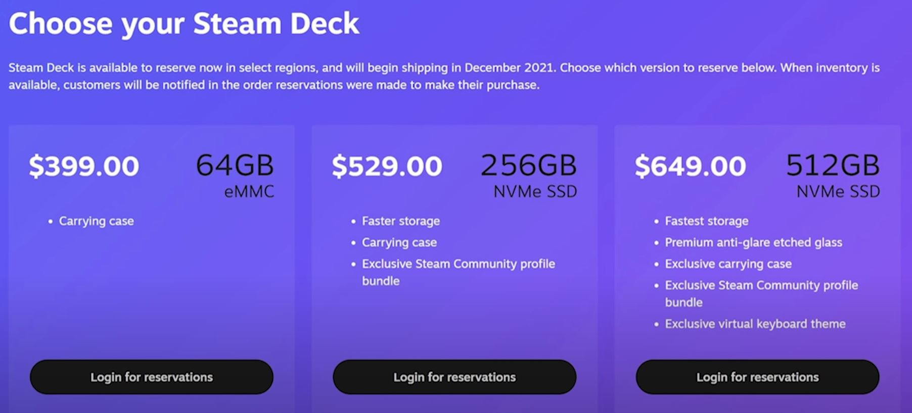 تم إطلاق منصة Steam Deck بشكل رسمي ومحدود، حيث تروج له الشركة المصنعة له Valve على أساس أنه حاسوب صغير أكثر من أنه جهاز ألعاب محمول، حيث يعمل من خلال نظام التشغيل SteamOS الذي هو عبارة عن نظام Linux مفتوح المصدر.