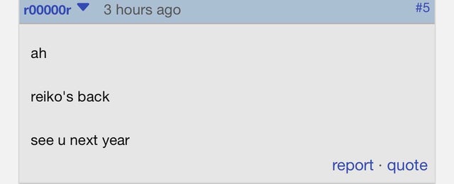 اخد اللاعبين على موقع Reddit تمكن من التقاط كلمات المسرب من خلال احد المنتديات حيث قال ان شخصية Reiko ستتواجد في الجزء القادم من السلسلة لاول مرة بعد اخر ظهور له في الجزء الرابع الرئيسي كما نشاهد ادناه، كما انه قال عبارة “اراكم العام القادم” في اشارة الا اننا قد نرى اللعبة تصدر في العام القادم او حتى قد يتم الكشف او الاعلان عنها في العام المذكور.
