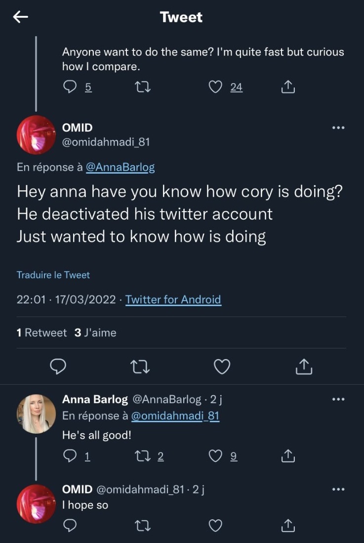 ومن أجل التأكد من الأمر قام أحد المتابعين بسؤال زوجة بارلوغ “آنا بارلوغ” من أجل الاطمئنان عليه، وكما ترون بالأسفل أجبت آنا المتابع بأنه بخير، وهو الأمر الذي يعيدنا الى أنها مجرد استفزازات معروفة لدى المخرج ولا ندري السر ورائها حتى الآن.