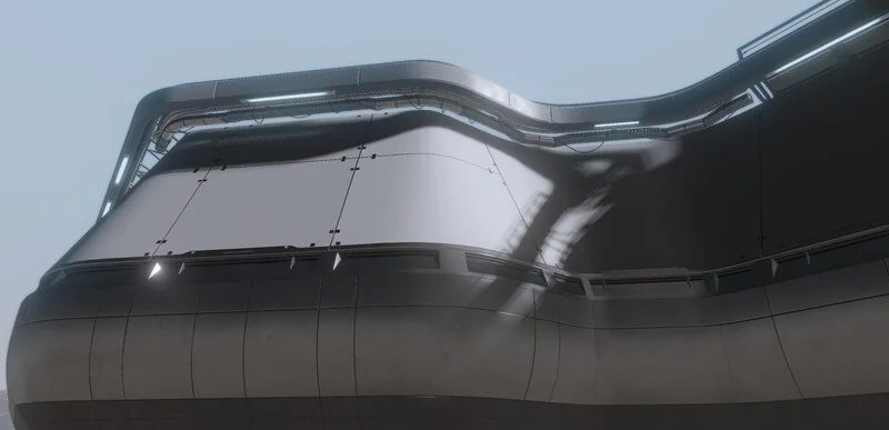 الصور التي يمكنكم مشاهدتها بالاسفل، تظهر لما يبدو انها قاعدة ضخمة بينما يقوم اللاعب باستكشافها من الخارج. وتبدو الصور انها مسربة من نسخة غير مكتملة التطوير او نماذج اولية لبعض تصاميم اللعبة.