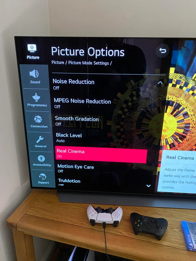 بالنسبة لبعض أجهزة تلفزيون LG، فقد تحول عدد من هذه الإعدادات الى اللون الرمادي (اي انها معطلة). مثل التدرج السلس وتقليل ضوضاء MPEG ووضع السينما الحقيقي وتقليل الضوضاء و Black Frame Insertion التي تتيح للمستخدمين تشغيل الألعاب بمعدل 60 إطارًا في الثانية على شاشات 120 هرتز من اجل عرض تقنية Motion Blur بشكل أفضل.