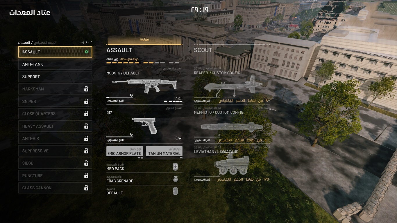 لقد اخترنا لكم صوراً من مختلف القوائم داخل اللعبة، مثل القائمة الرئيسية وصفحة تخصيص الأسلحة وقائمة الحقيبة وقائمة اختيار العتاد. نعمل بجهد على ترجمة جميع القوائم وإضافتها إلى نسخة التطوير على عدة مراحل لنتأكد من أنها تعمل بسلاسة! نختبر أيضاً حالياً الدبلجة العربية ونعمل على إضافتها.