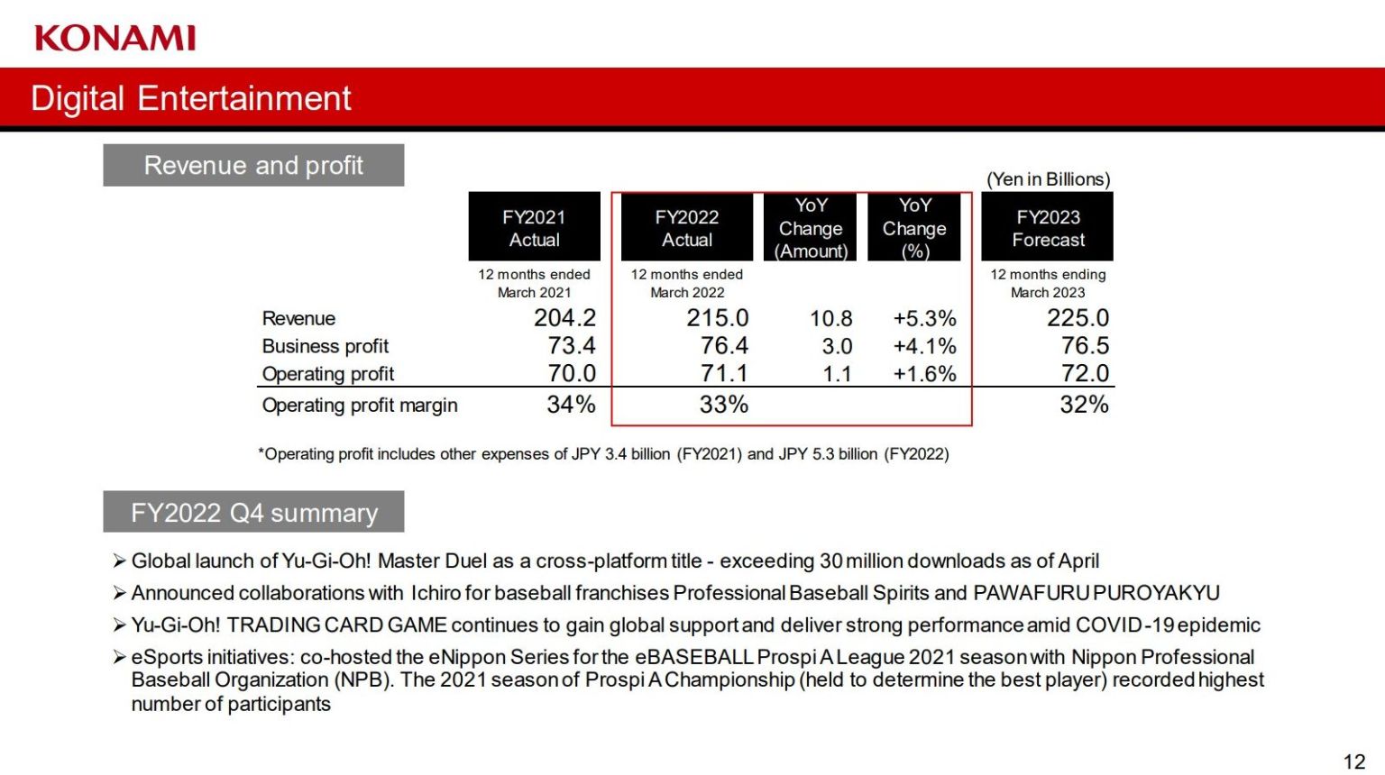 أعلنت شركة Konami اليابانية اليوم عن ارباح السنة المالية 2022 التي انتهت في تاريخ 31 مارس 2022، حيث كان شهدت عام قوي من حيث الإيرادات.