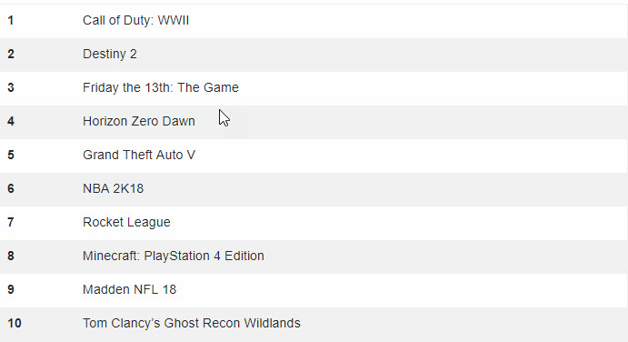 اكثر 10 العاب تم تحميلها على البلايستيشن 4 خلال عام 2017:
