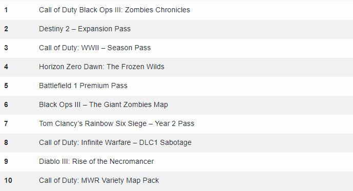 اكثر 10 محتوى اضافي تم تحميلها على البلايستيشن 4 خلال عام 2017: