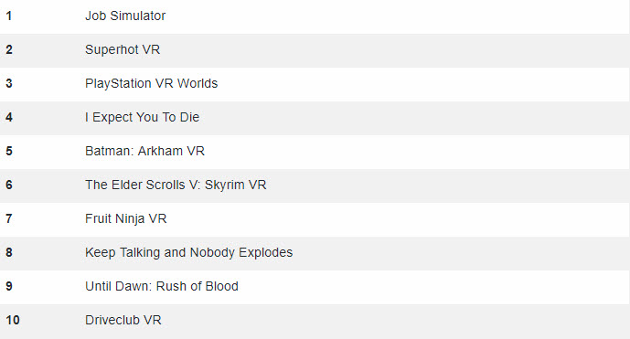 اكثر 10 العاب VR تم تحميلها خلال عام 2017: