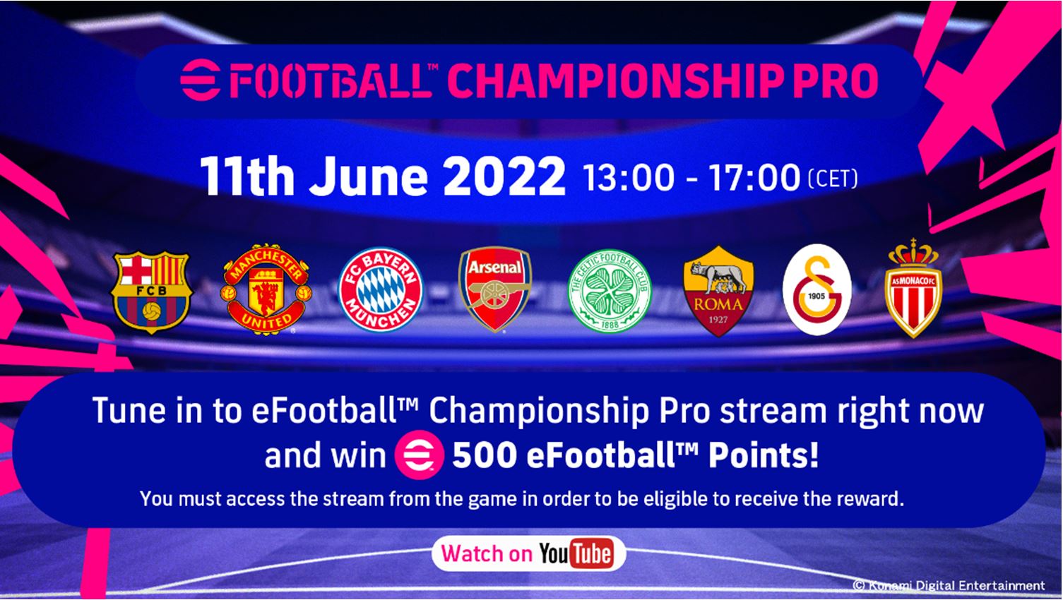 قامت شركة KONAMI اليوم بالإعلان عن جدول المواعيد و النوادي المشاركة في eFootball Championship 2022، حيث تم فصل هذه المنافسة إلى إصدارين وهما eFootball Championship Pro و eFootball Championship Open.