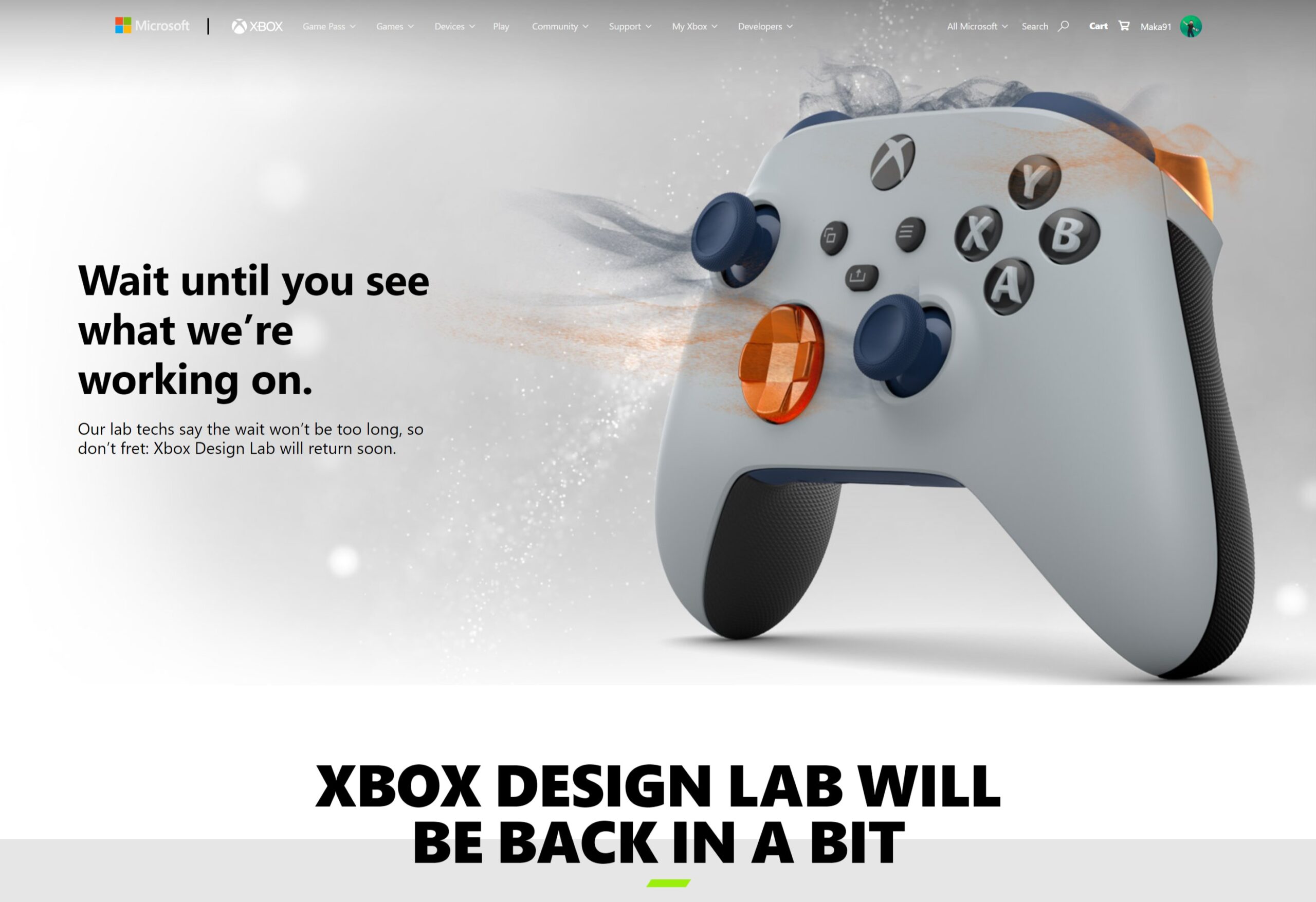 انتظر وشاهد ما نعمل عليه. يؤكد التقنيون لدينا أن الانتظار لن يكون طويلاً لذا لا تقلق، سيعود Xbox Design Lab قريبًا