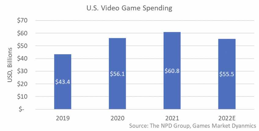 المحلل ذكر في تحليله لسوق الألعاب داخل الولايات المتحدة الأمريكية، أن الأشهر الماضية من هذا العام استمر إنفاق المستخدمين على الألعاب في الانخفاض. ومن المرجح أن يستمر التراجع خلال الأشهر القليلة المتبقية.