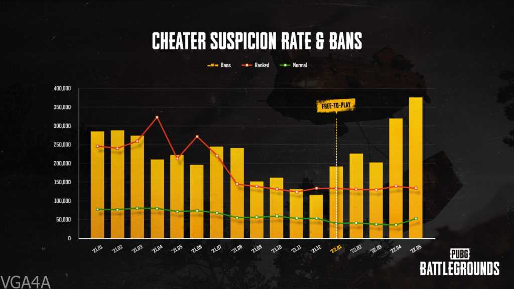 وفيما يخص مكافحة الغش داخل اللعبة، أعلن فريق ببجي من خلال الموقع الرسمي للعبة، بأنه يتم إجراء العديد من تعزيزات مكافحة الغش الأخرى بشكل مستمر ، كان آخرها حظر أكثر من 200,000 من حسابات الغشاشين شهريًّا منذ التحول إلى اللعب المجاني بصورة دائمة.