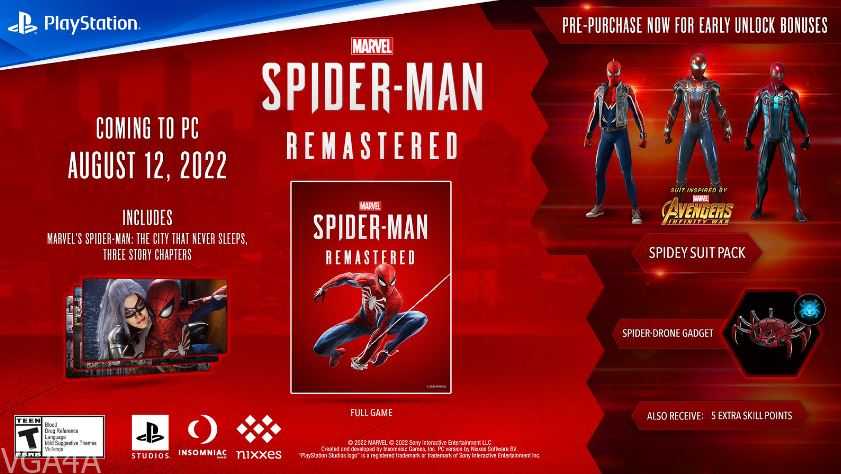 سيحصل أصحاب الطلب المسبق للعبة Marvel’s Spider-Man Remastered على الحاسب الشخصي على حزمة متميزة من العناصر التي سوف تحتوي على ما يلي: