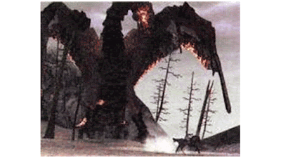 عملاق يشبة طائر العنقاء ولكن النار تشتعل في سائر جسمها و كانت فكرة مواجهتها تعتمد على استدراجها الى بحيرة قريبة و اغراقها بالماء لاطفاء النار و القضاء عليها.