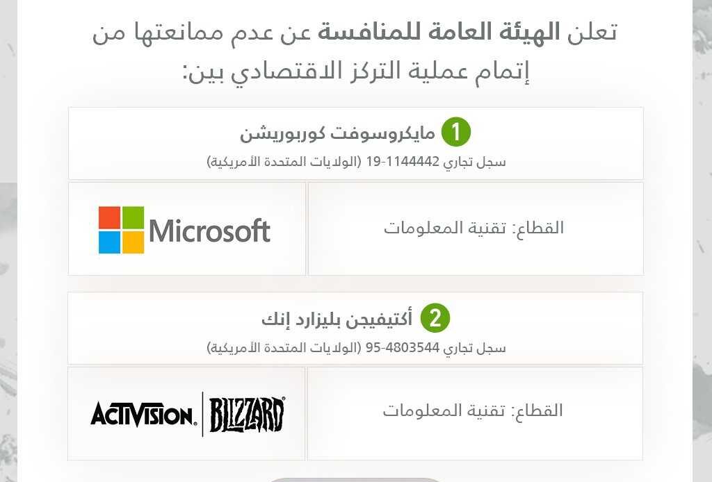 -أكتيفيجن بليزارد إنك pic.twitter.com/lo5scC3F7k— الهيئة العامة للمنافسة (@SaudiGAC) August 21, 2022