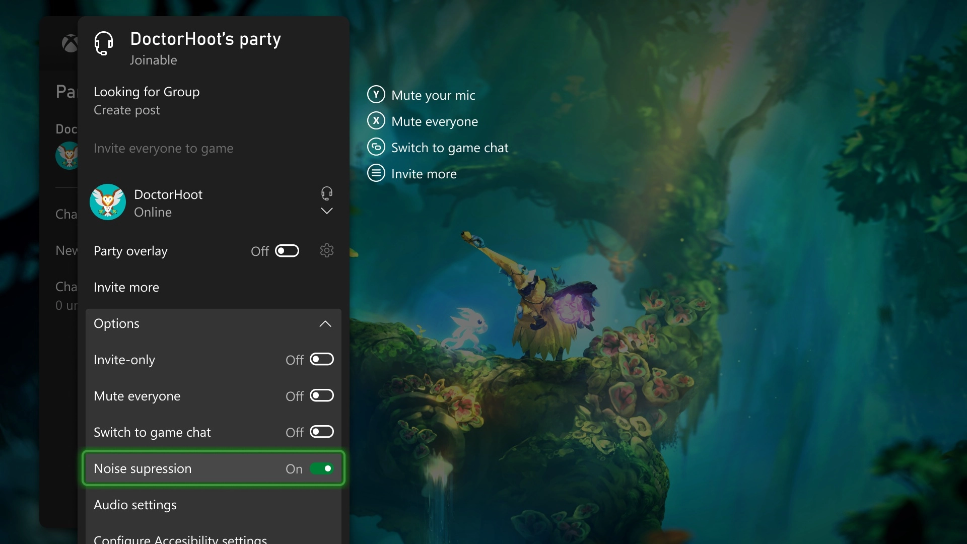 في حال كنت تريد الاحتفاظ ببعض أنواع ضوضاء الخلفية مثل الموسيقى في حفلاتك، فيمكنك أيضًا إيقاف تشغيل خاصية منع الضوضاء. حيث ما عليك سوى فتح الدليل والتمرير إلى الشريط الخاص بالمحادثات “Parties & chats” وتحديد الخيارات “Options”. هناك يمكنك تمكين أو تعطيل قمع الضوضاء. وهي ميزة ستتوفر اليوم فقط على أجهزة Xbox Series X | S، وسوف تتوفر على المزيد من الأجهزة قريبًا.