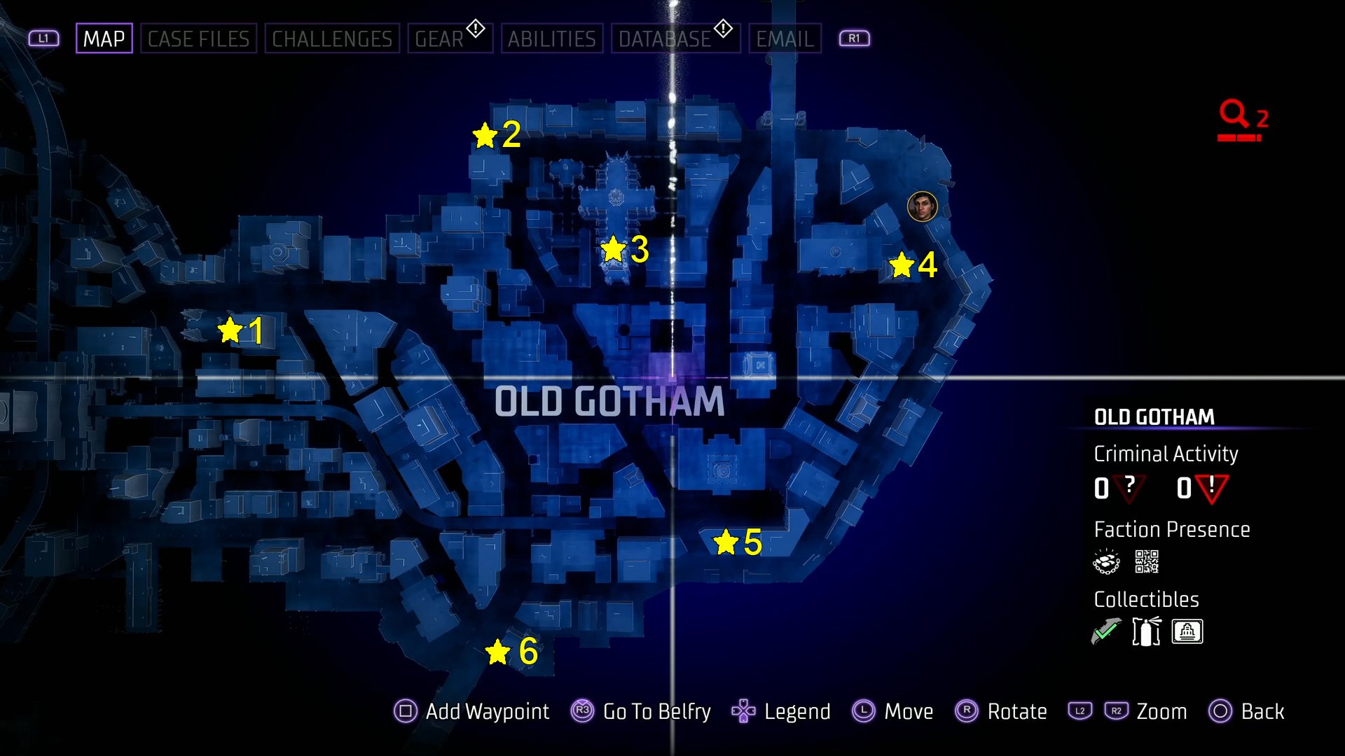 للتنقل السريع يمكن استخدام الدراجة التي ستقوم باستدعائها باستخدام الأسهم. لكن مع ذلك لا توجد طريقة اخرى للتنقل بشكل أسرع من موقع الى آخر خصوصاً وأن خريطة لعبة Gotham Knights كبيرة نوعاً ما. فمنطقة غوثام مقسمة بحسب الأعداء الى مناطق جنوبية، شمالية، شرقية وأيضاً غربية.