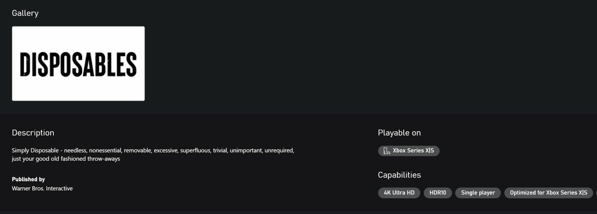 متجر مايكروسوفت يسرب عن طريق الخطأ مشروع جديد من الناشر WB Interactive