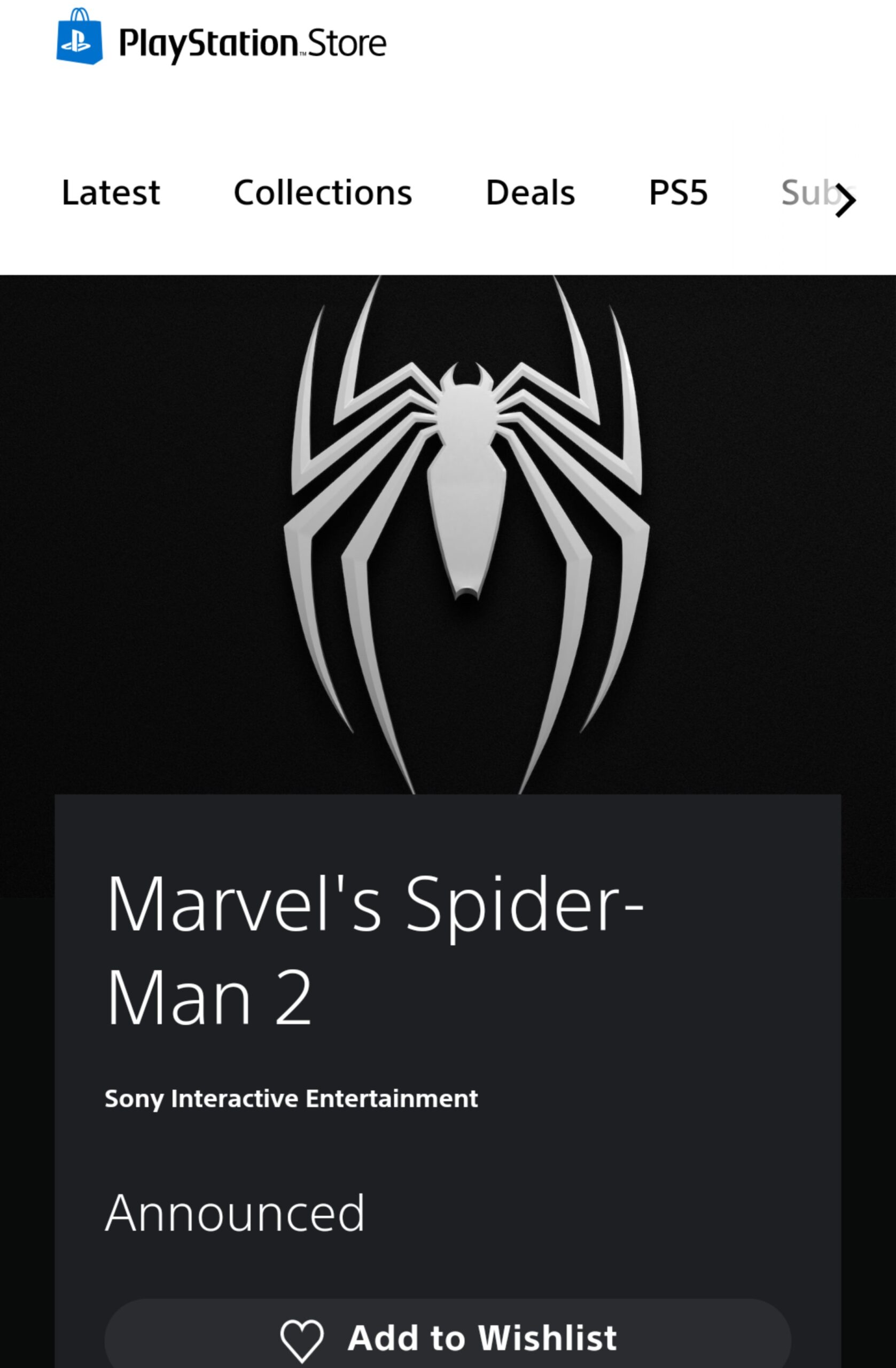 عادت لعبة Spider-Man 2 للظهور مرةً أخرى عبر متجر بلايستيشن، حيث يمكن للاعبين الآن إضافتها لقائمة الأمنيات. هذا يعني أنه يمكنك حجز اللعبة أو الحصول على تنبيه عندما تصبح اللعبة قابلة للطلب المسبق والشراء.