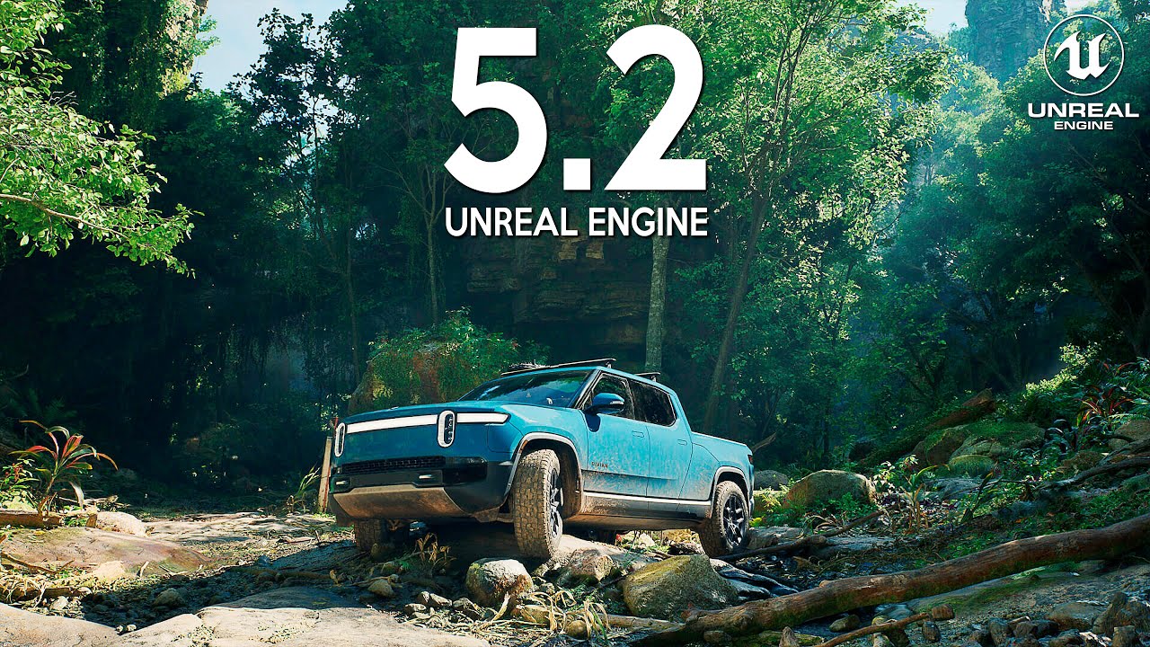 - دعم تقنية Quixel megascans التي تدعم إنشاء مشاهد بأشياء مثل النباتات الكثيفة بسهولة أكبر، ومثال على ذلك سيارة الدفع الرباعي Rivian التي ظهرت في العرض التوضيحي المذهل.