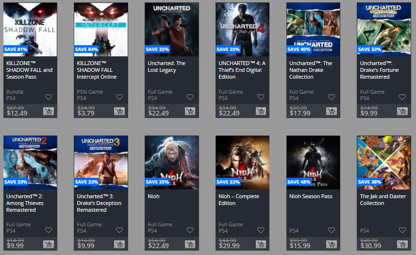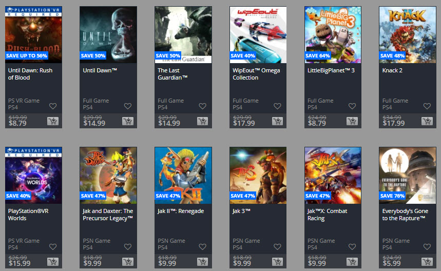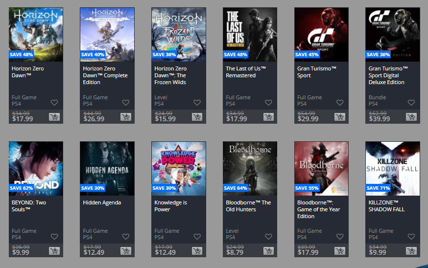 اطلقت بلايستيشن الشرق الاوسط حملة تخفيضات مميزة هذا الاسبوع على الكثير من حصريات البلايستيشن 4 المميزة و التي يمكنك الحصول عليها بتخفيض يصل الى 70% و يمكنكم الاطلاع على بعض العناوين المخفضة بالاسفل و يمكنكم زيارة متجر البلايستيشن العربي من خلال الرابط التالي للاطلاع على جميع الالعاب المخفضة على البلايستيشن 4 و 3 و الفيتا.