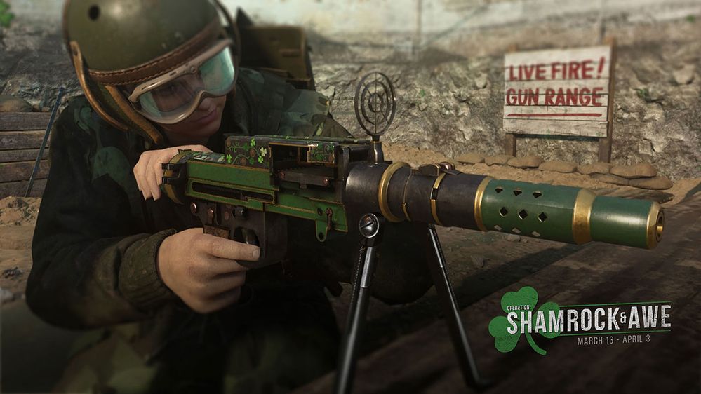 كشفت اكتفجين اليوم عن حدث جديد للعبة Call of Duty: WWII بعنوان “عمليه شامروك و الرعب” او Operation: Shamrock & Awe و التي تتوفر ابتدأ من الان و حتى 3 ابريل القادم جالبة قوائم تسجيل للعب الجماعي, مجموعة عتاد محدودة الوقت, بالإضافة لأوامر و عقود خاصة ذات أمتعة و أسلحة مميزة.