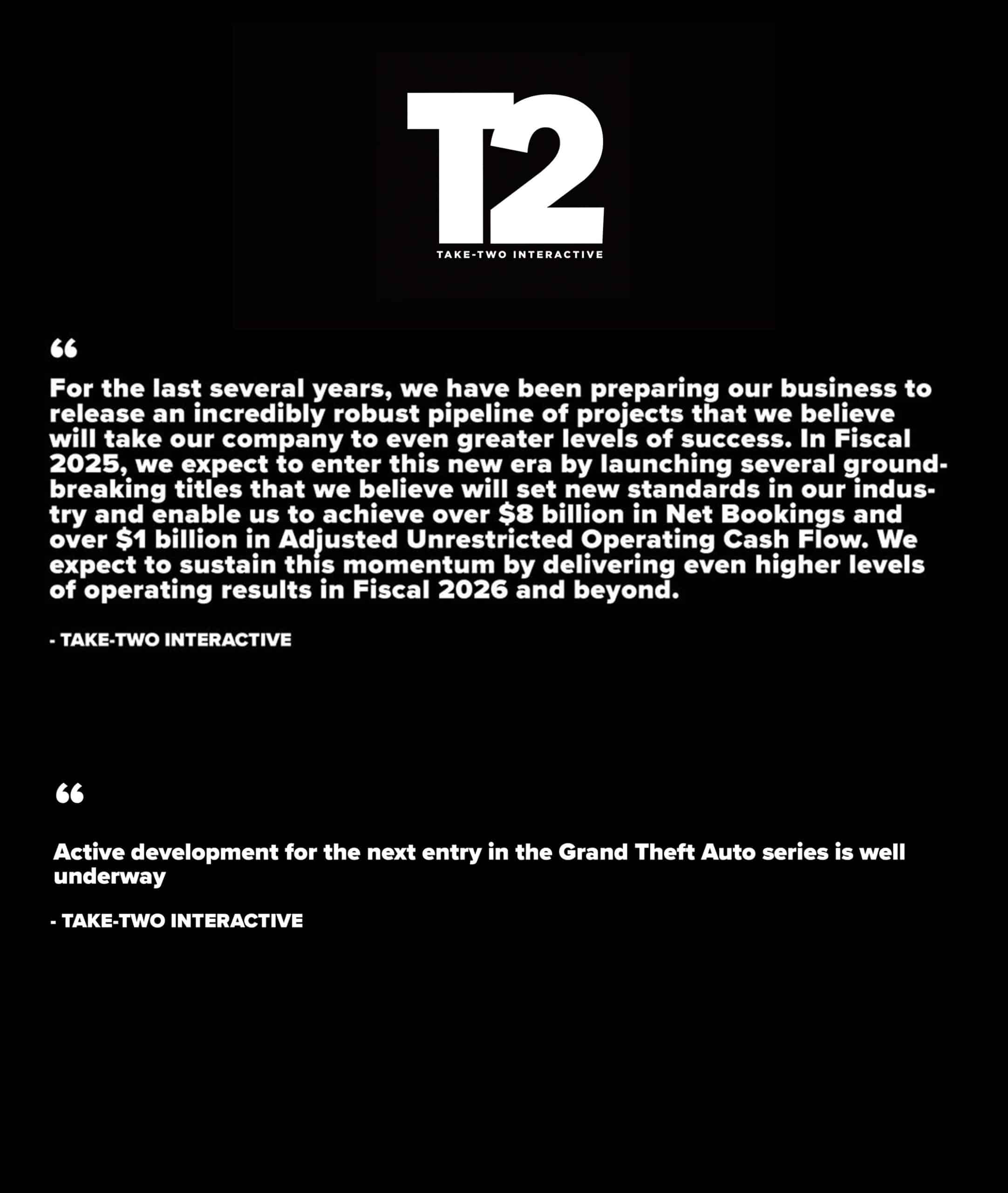 “بالنظر إلى المستقبل، يعتبر العام المالي 2025 عاما مرتقبا للغاية بالنسبة لشركة Take-Two.”
