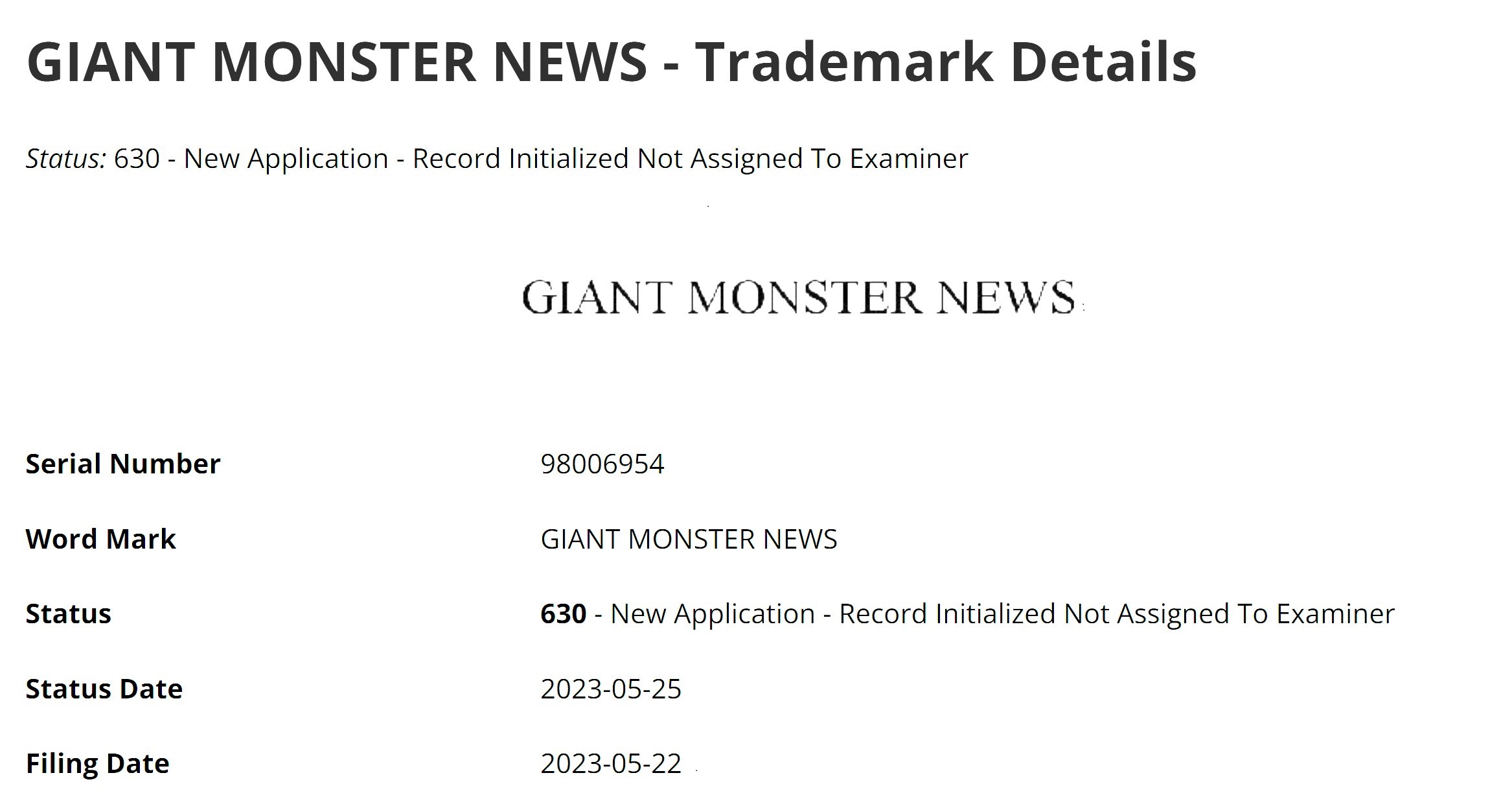 من المعروف لدى الجميع أن شركة Zenimax أصبحت جزء من عائلة شركة مايكروسوفت بعد الاستحواذ عليها بداية عام 2021، ومنذ ذلك الحين، لم نحصل على أي تعليق رسمي من الشركة بخصوص هذا المشروع. ومع ذلك، يبدو أن الملكية الفكرية لم تختف بشكل كامل، حيث تم تقديم طلب تسجيل جديد من قبل فريق Zenimax مرتبط بنفس المشروع الغامض وهو “Giant Monster News”.