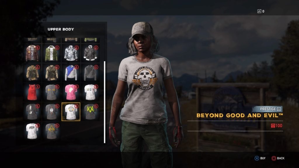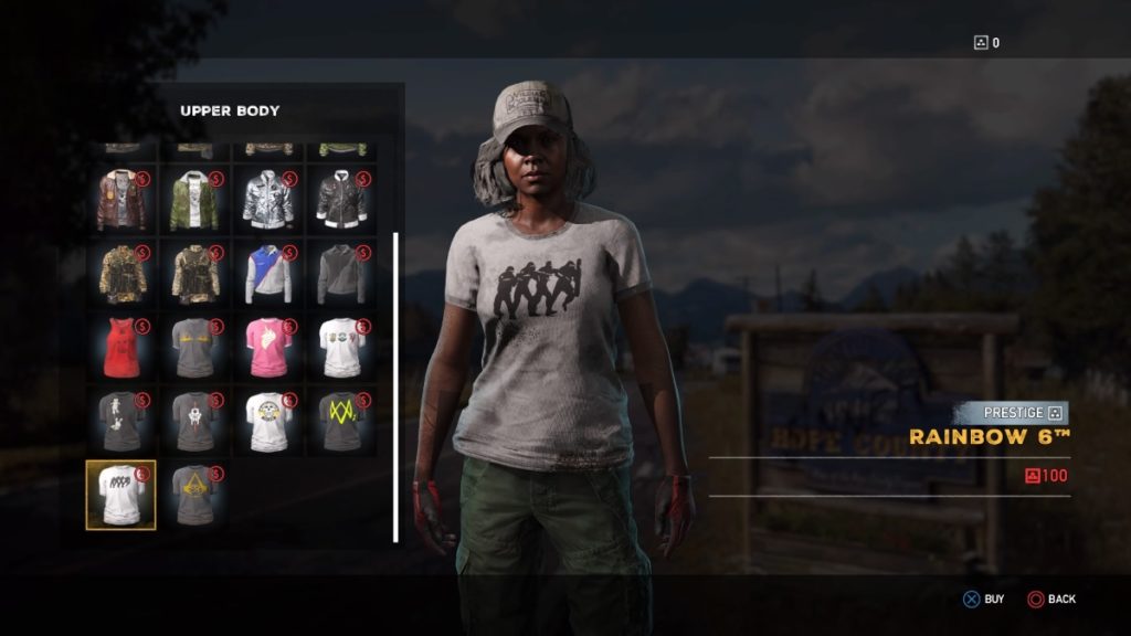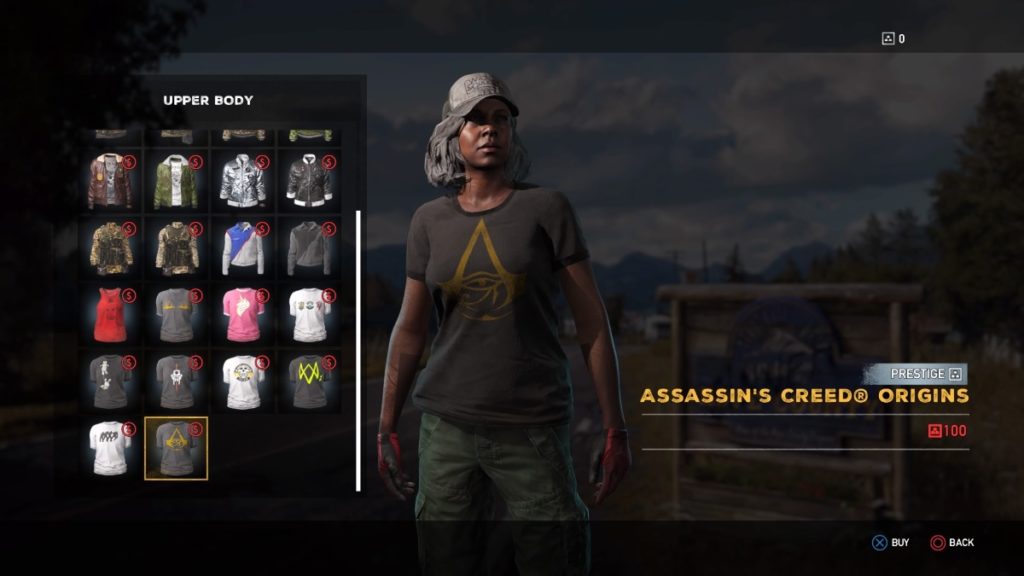 الرائع في يوبي سوفت انها غالبا ما تربط بين العابها و Far Cry 5 ليست استثناء حيث ستجد في اللعبة الكثير من الازياء التي تحمل علامات او شعارات العاب اخرى من العاب يوبي سوفت مثل Assassin’s Creed و Rainbow Six و Beyond Good & Evil و For Honor و Watch Dogs و اليكم هنا بعض الصورة لبعض القمصان التي تعمل شعارات هذه الالعاب.