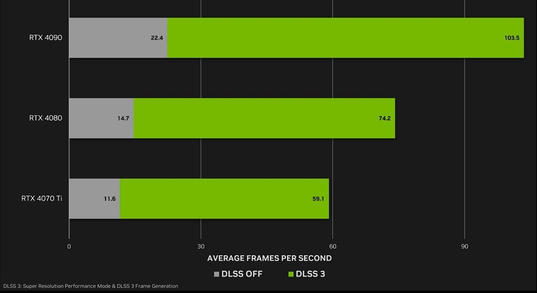تعتبر التقنية الجديدة في نسختها الثالثة DLSS 3 من NVIDIA من أهم عناصر زيادة أداء الألعاب التي تصل نسبتها أحياناً إلى 4 مرات دون التضحية بجودة الصورة، وهي تقنية تعتمد بشكل أساسي على الذكاء الاصطناعي لتحسين الصور منخفضة الدقة الى صور ورسومات عالية الدقة. هذا الأمر يسمح بتشغيل الألعاب بمعدلات إطارات أعلى ودقة أعلى.