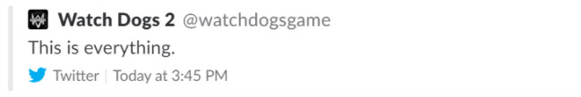 لم يطلق حساب لعبة Watch Dogs اي تغريدة منذ مدة طويلة جدا و لكن اليوم و بشكل مفاجئ ظهرت تغريدة كتب فيها “This is Everything” او “هذا كل شيء” على الحساب و تم حذفها بشكل مباشر بعد ذلك ولكن بعض المتابعين قاموا بالتقاط صورة و التي تشاهدونها بالاسفل.