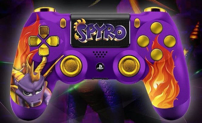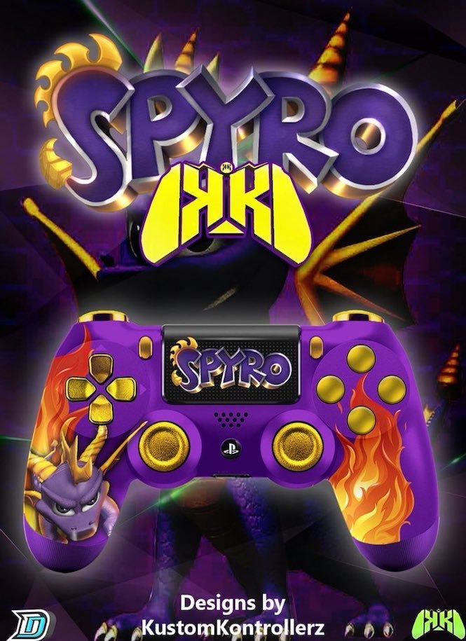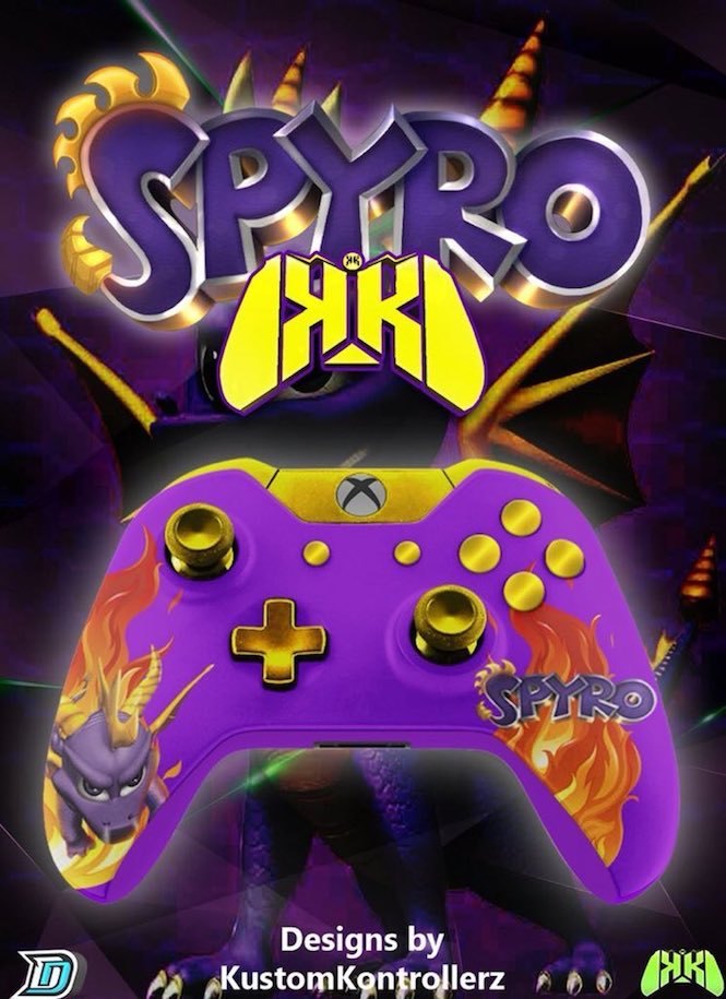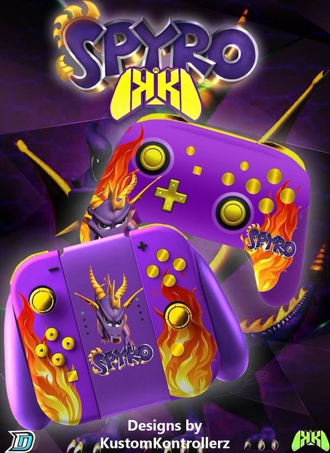 بعد الاعلان رسميا عن عودة لعبة Spyro بنسخة ريميك على اجهزة الجيل الحالي قام فريق Kustom Kontrollerz بعمل تصاميم رائعة للعبة Spyro Reignited Trilogy على وحدة تحكم البلايستيشن 4 و الاكسبوكس وان و كذلك وحدة تحكم JoyCon و Pro Controller الخاصة بجهاز نينتيندو سويتش رغم انه لم يتم الاعلان عن نسخة للجهاز.