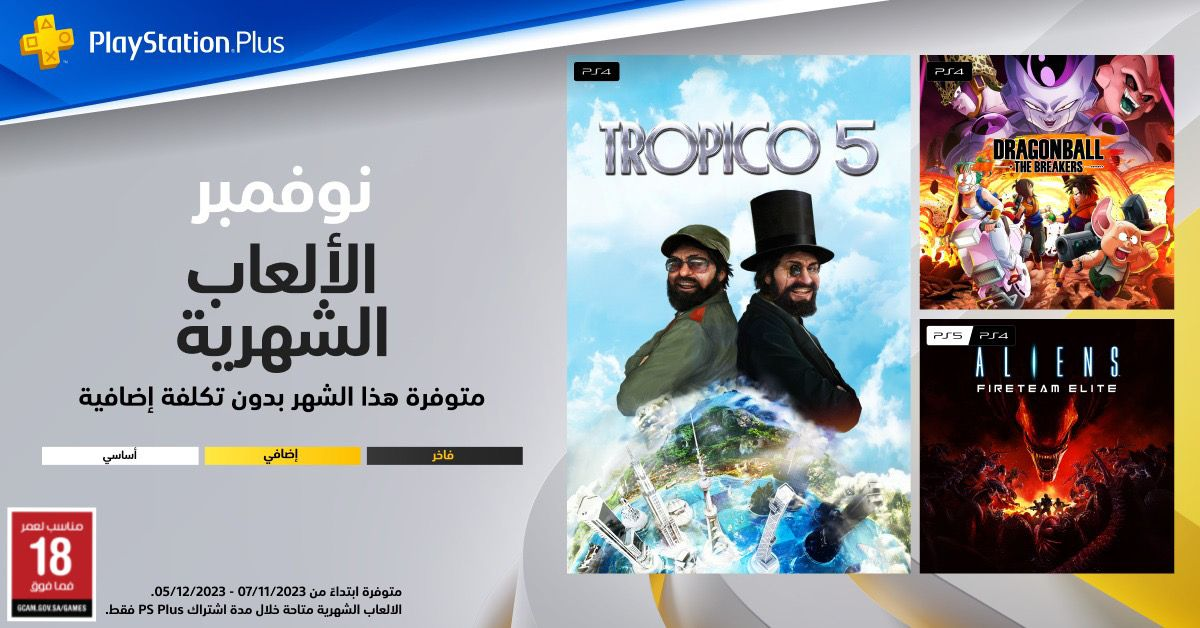 المتجر السعودي قبل قليل شاركنا قائمة ألعاب بلايستيشن بلس الأساسية الكاملة لشهر نوفمبر، والتي غابت عنها لعبة مافيا 2، ومقابلها كانت هناك لعبة المحاكاة والبناء Tropico 5 كما تشاهدون من خلال الحساب الرسمي.