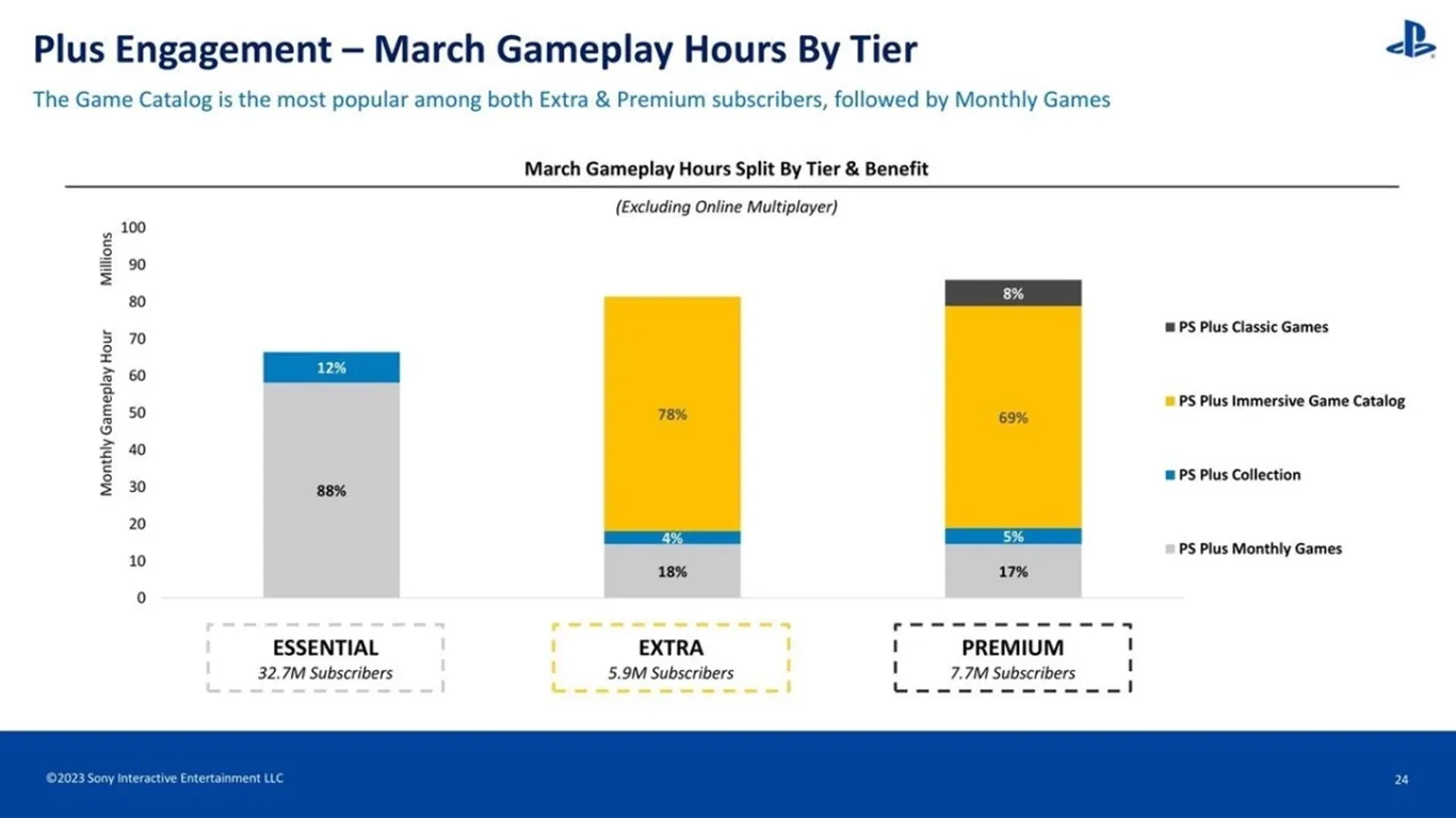 من المعروف أن خدمة بلايستيشن PS Plus لديها ثلاثة فئات مختلفة بأسعار وميزات متفاوتة وهي Essential و Extra و Premium ولكل منها مميزاتها المختلفة عن الأخرى. فمثلًا الفئة الأولى تمنحك ثلاثة ألعاب مجانية شهريا بالإضافة القدرة على اللعب أونلاين، أما الفئة الثانية تمنحك كل ما سبق بالإضافة إلى كاتالوج مميز من الألعاب الإضافية، والثالثة تضيف لك تجربة الألعاب الكلاسيكية والقدرة على بث الألعاب بالإضافة إلى إتاحة نسخ تجريبية من الإصدارات الجديدة.