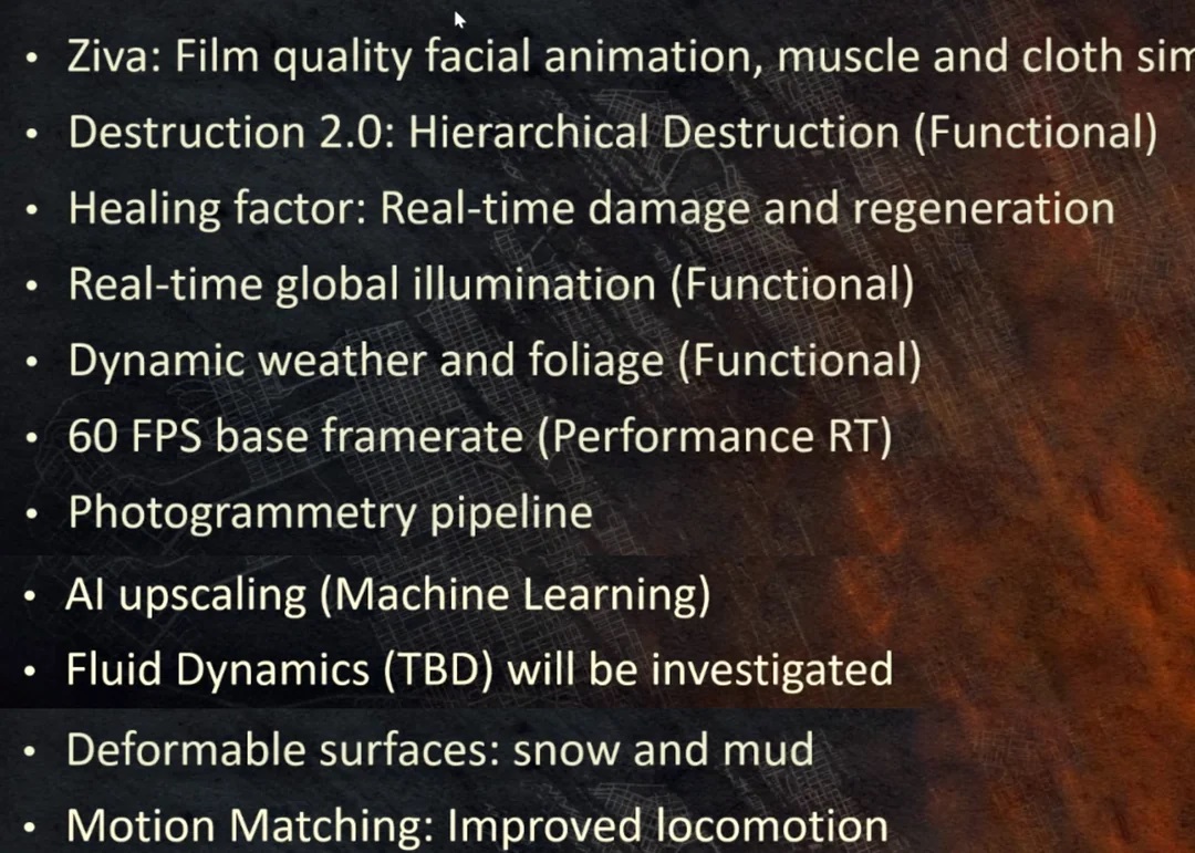 بجانب تسريبات جهاز PlayStation 5، فهناك تسريبات أخرى تشير الى أهم الخصائص والميزات البصرية والتقنية التي ستتمتع بها لعبة Wolverine، والتي تشمل حركة الوجه بجودة الأفلام والأنميشن والحركة المحسنة بشكل عام والاضاءة، بالإضافة الى الدمار وتلقي الأضرار والتعافي في الوقت الفعلي، بالإضافة الى وجود خاصية الطقس الديناميكي وفيزياء أوراق الشجر وتشوه الأسطح التي تتلقى الأضرار.