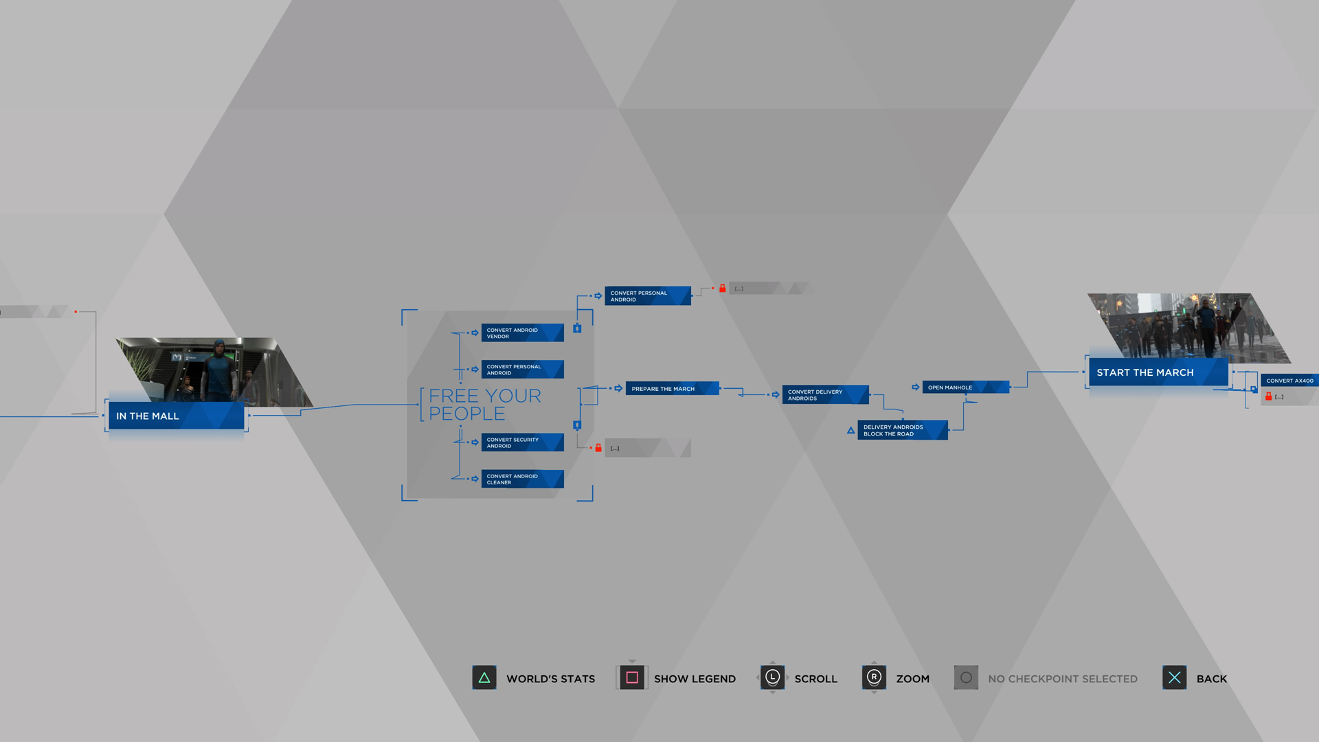 الرائع في الامر انك ستبدأ بالشخصيات الثلاثة من الصفر و بكل صراحة شعرت بالملل مع البداية حيث كانت القرارات تقتصر على اشياء مملة بعض الشيء فمثلا عندما كنت اتحكم بشخصية “كارا” كونها مدبرة منزل فقد وجدت نفسي اجهز الطعام للعائلة و انظم البيت و كل هذا يتطلب منك الضغط على الازرار او تحريك عصى الانالوج الايمين باتجاهات محددة تظهر لك على الشاشة و كذلك الامر مع شخصية “ماركس” و لكن “كونر” كونة مختص في التحقيقات الجنائية فقد استمتعت معة منذ البداية.