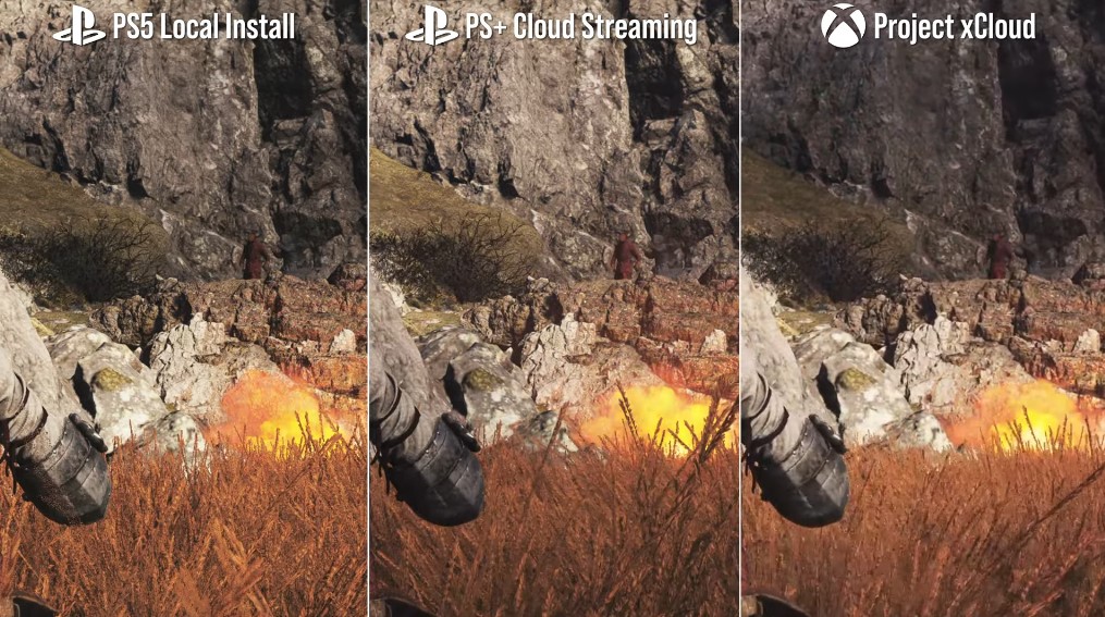 قامت قناة Digital Foundry كذلك بمقارنة نظام البث السحابي PlayStation Plus Cloud بنظام البث السحابي xCloud من شركة مايكروسوفت رغم أن الأخير ما يزال في مراحله التجريبية منذ سنوات، وأظهرت منصة سوني تفوق ملموس على منافستها سواء على مستوى دقة الفيديو في العديد من الألعاب على وضع 60 إطار والتي وصلت في العديد من ألعاب منصة PS5 الى 4K، وكذلك على مستوى معدل الـ bitrate في البث.