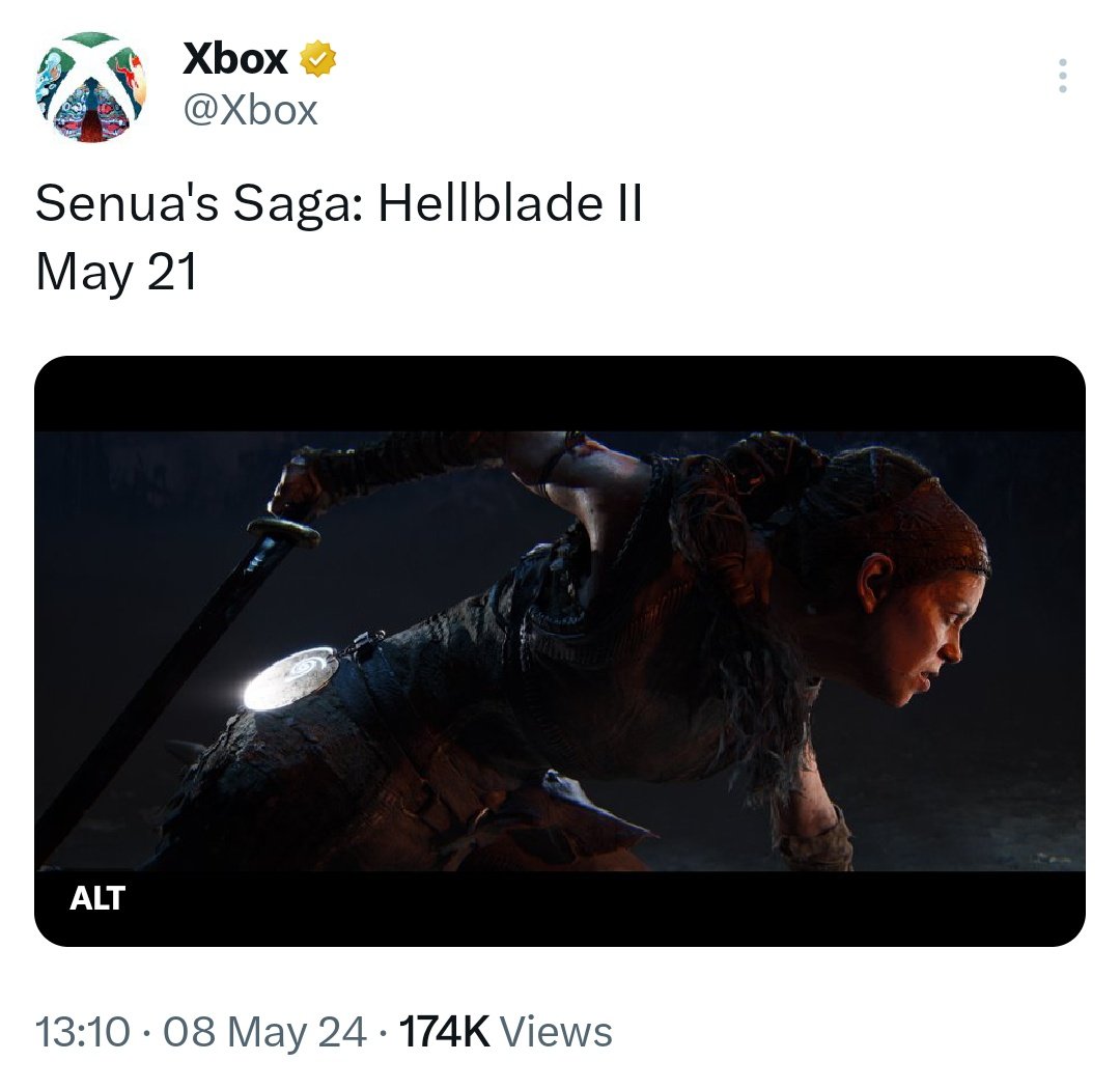 لعبة Hellblade 2 ستصدر يوم 21 مايو الجاري اي بعد اقل من 12 يوم من لحظة كتابة هذا التقرير، وكل ما فعلته مايكروسوفت هو نشر تغريدة قصيرة تحتوي على صورة ملتقطة من اللعبة بجانب موعد الاصدار
