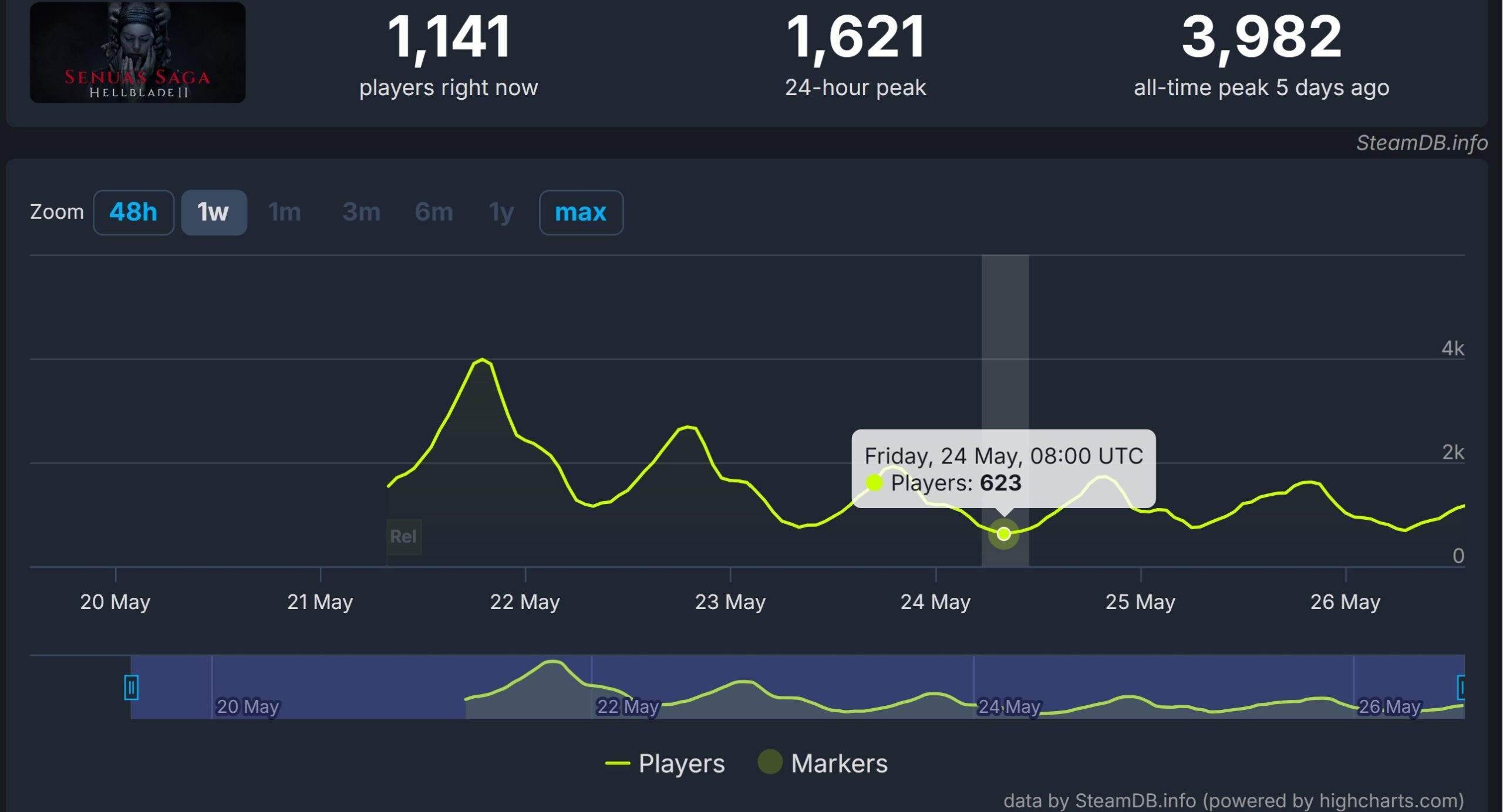 مع الأسف فإن أداء اللعبة من حيث اللاعبين المتزامنين والذي يعتبر مرآة لمبيعاتها على المنصة يعتبر حتى أسوأ من أداء لعبة Redfall التي فشلت على جميع المستويات، ولكن هذا لا يعني بتاتًا أن لعبة Hellblade 2 لعبة سيئة أو فشلت على مستوى التقييمات، ولكننا هنا نتحدث عن أرقام مخيفة في ظل صعوبة معرفة أعداد اللاعبين الذين قاموا بشراء اللعبة عبر متجر مايكروسوفت الرقمي، وهي على الأغلب أرقام ضعيفة نظرًا لتوفرها على خدمة جيم باس.
