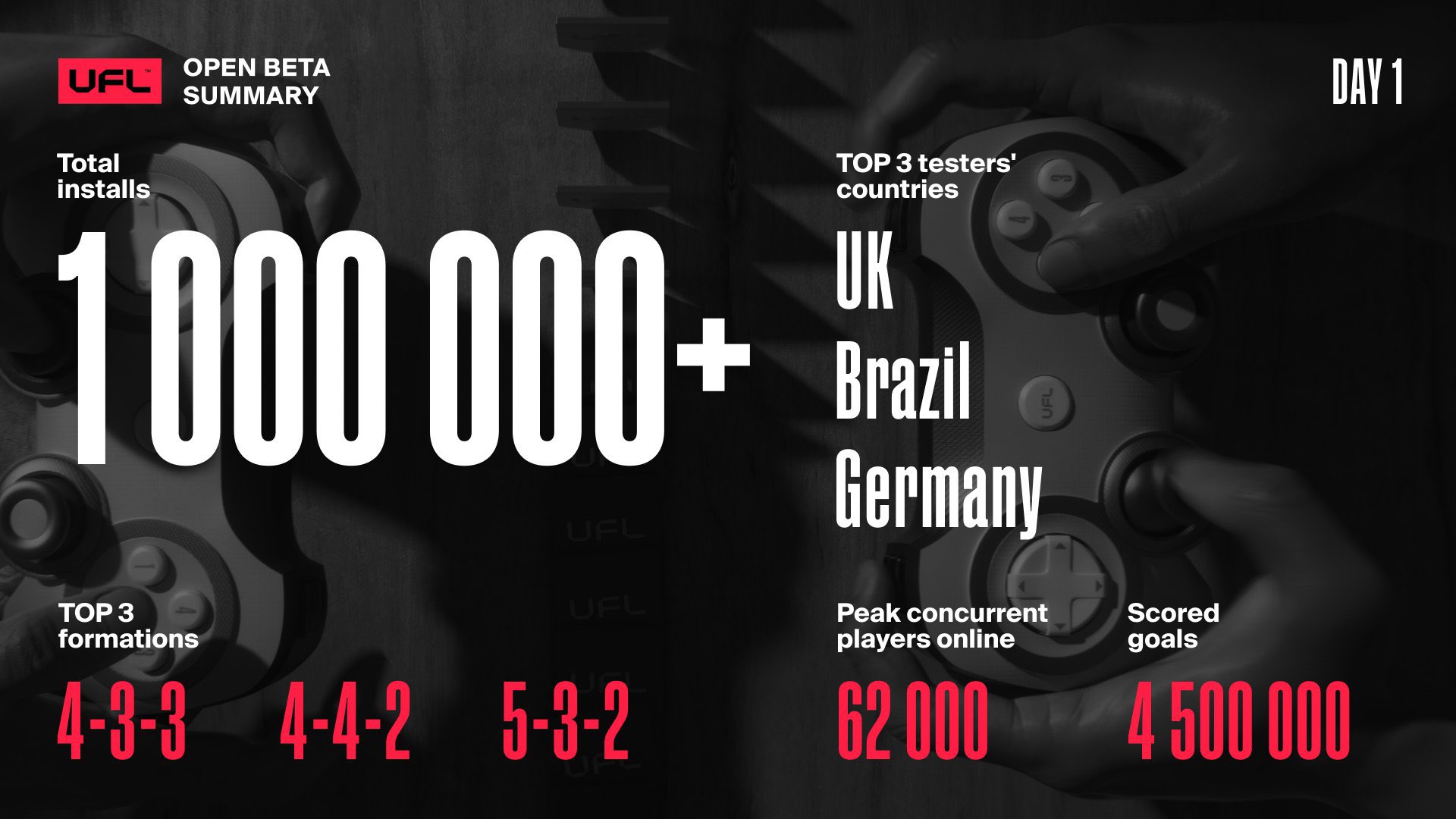 بعد فترة اختبار مغلقة (Closed Alpha) بدأت في أكتوبر 2023، فتحت لعبة كرة القدم المجانية UFL أبوابها لجميع اللاعبين في مرحلة البيتا المفتوحة (Open Beta) في 7 يونيو، وحققت نجاحًا كبيرًا بتخطيها حاجز المليون تحميل وجذب أكثر من 62 ألف لاعب متزامن، ويأتي هذا النجاح بعد إطلاق النسخة الاختبارية وتؤكد أيضًا الشعبية المتزايدة للعبة بين محبي كرة القدم.
